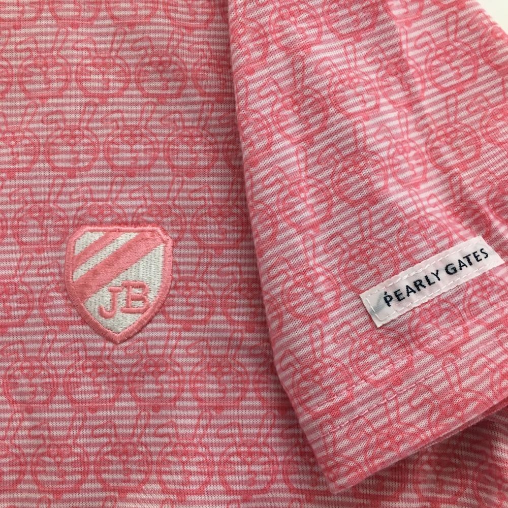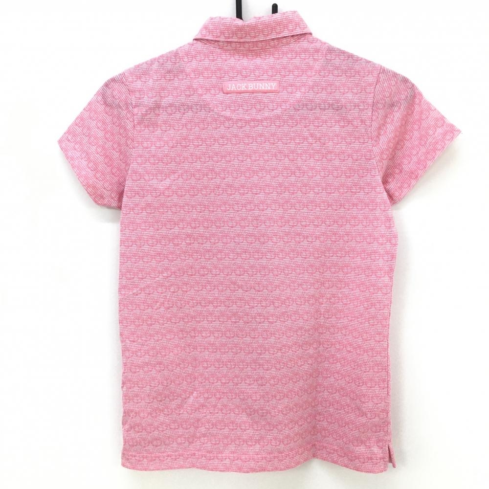 【超美品】ジャックバニー×ドラえもん 半袖ポロシャツ ピンク ドラえもん総柄 ボーダー レディース 0(S) ゴルフウェア Jack Bunny