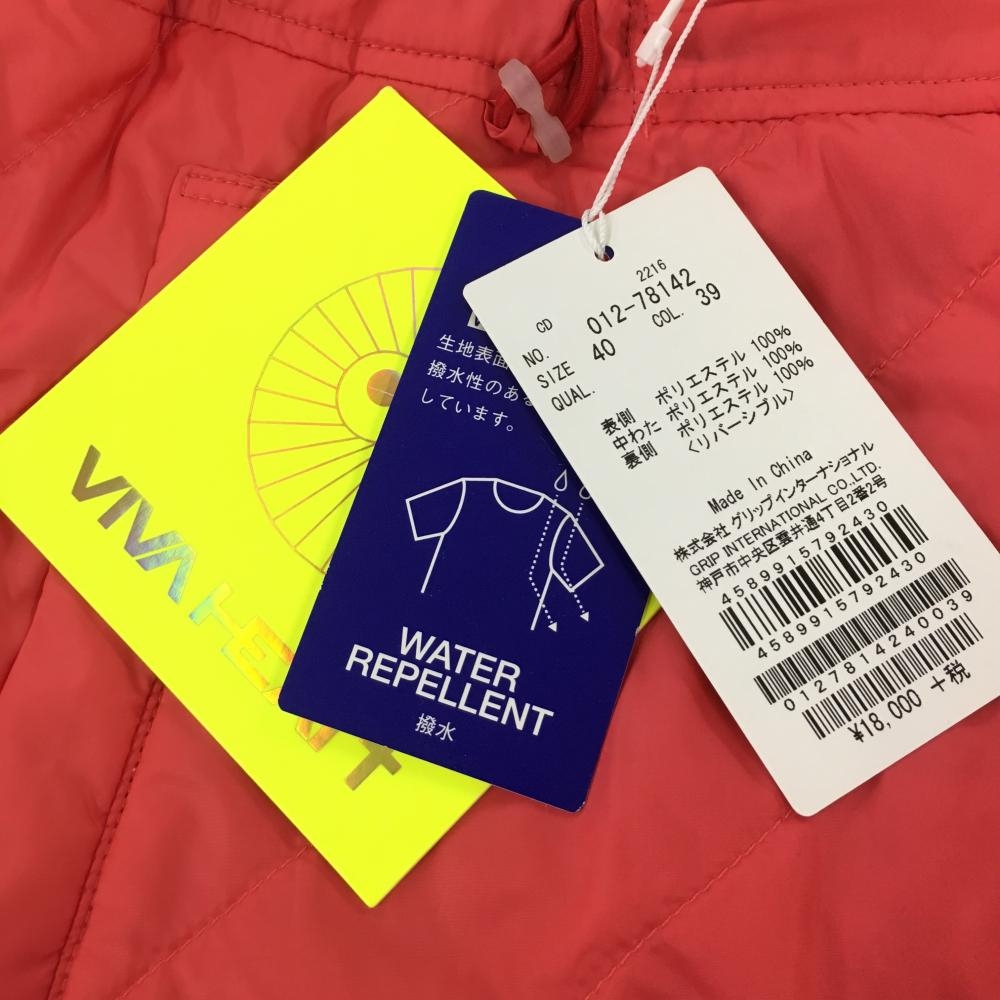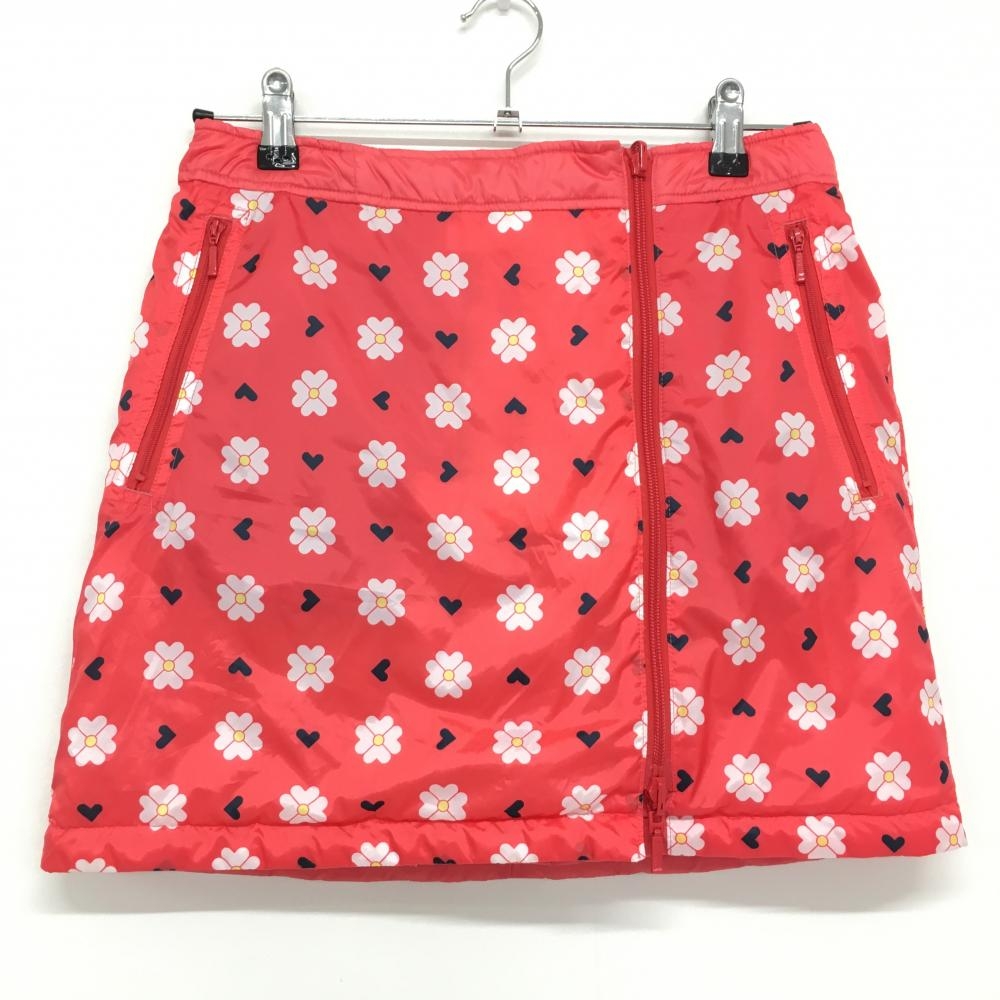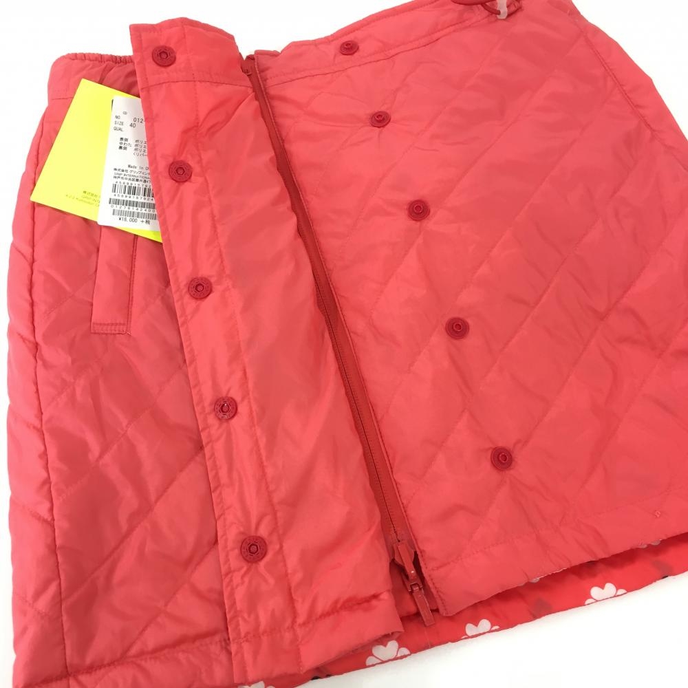 【新品】ビバハート 中綿リバーシブルスカート オレンジレッド 無地 花柄 撥水 レディース 40 ゴルフウェア VIVA HEART