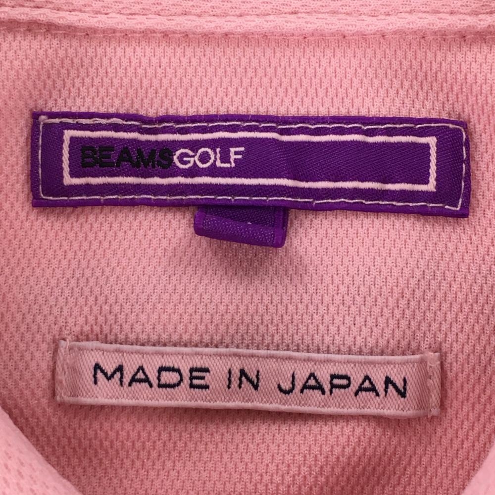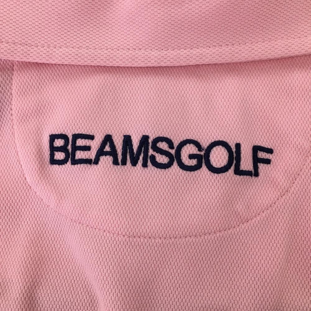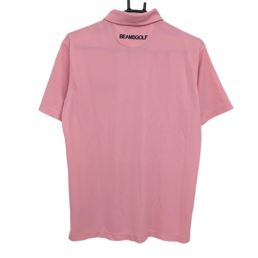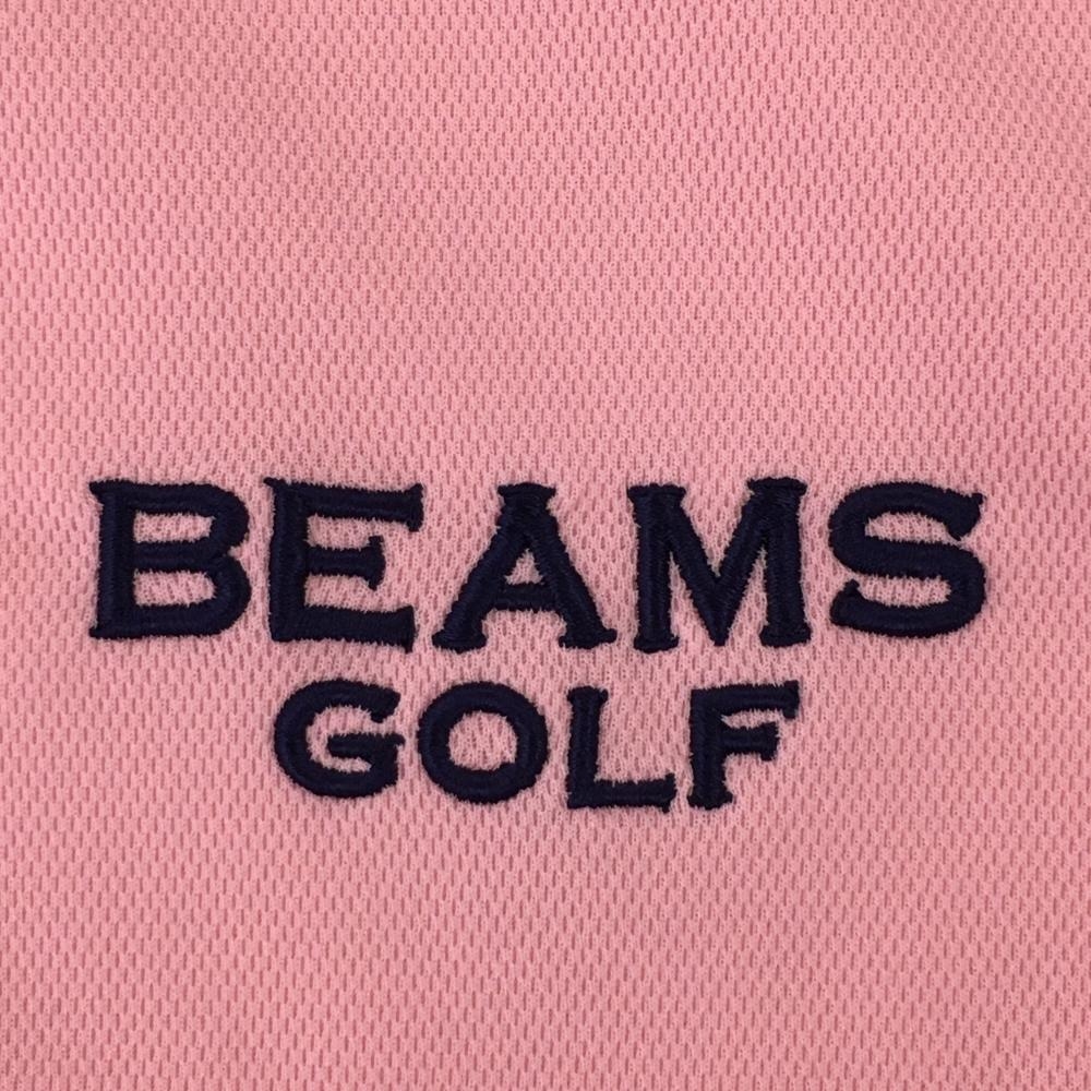 【超美品】ビームスゴルフ 半袖ポロシャツ ピンク×ネイビー ロゴ刺しゅう メンズ M ゴルフウェア 2022年モデル BEAMS GOLF
