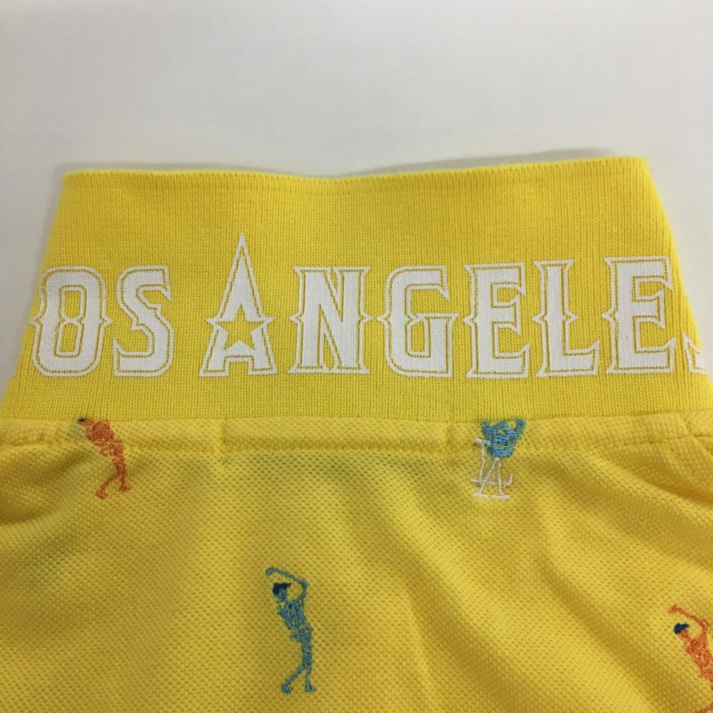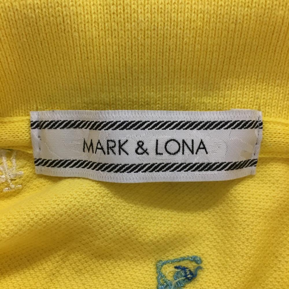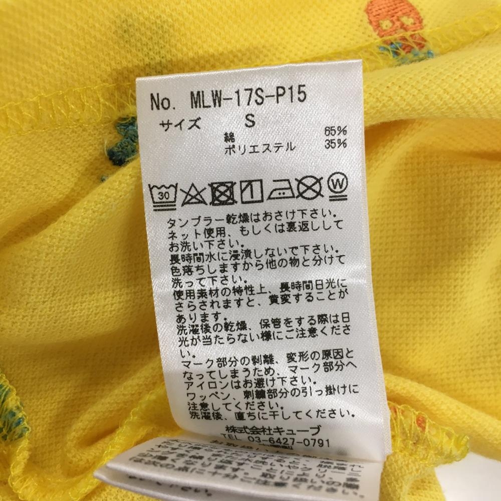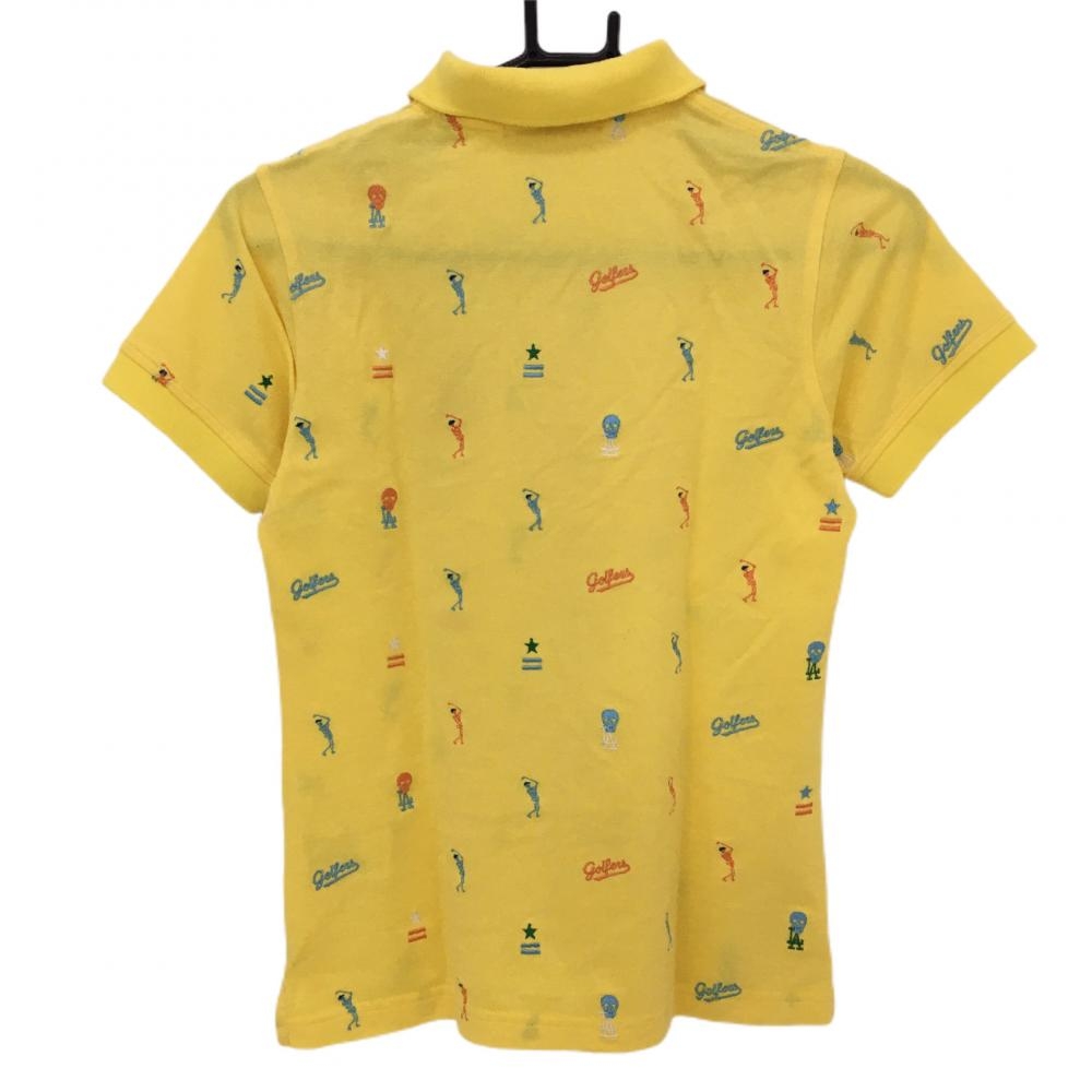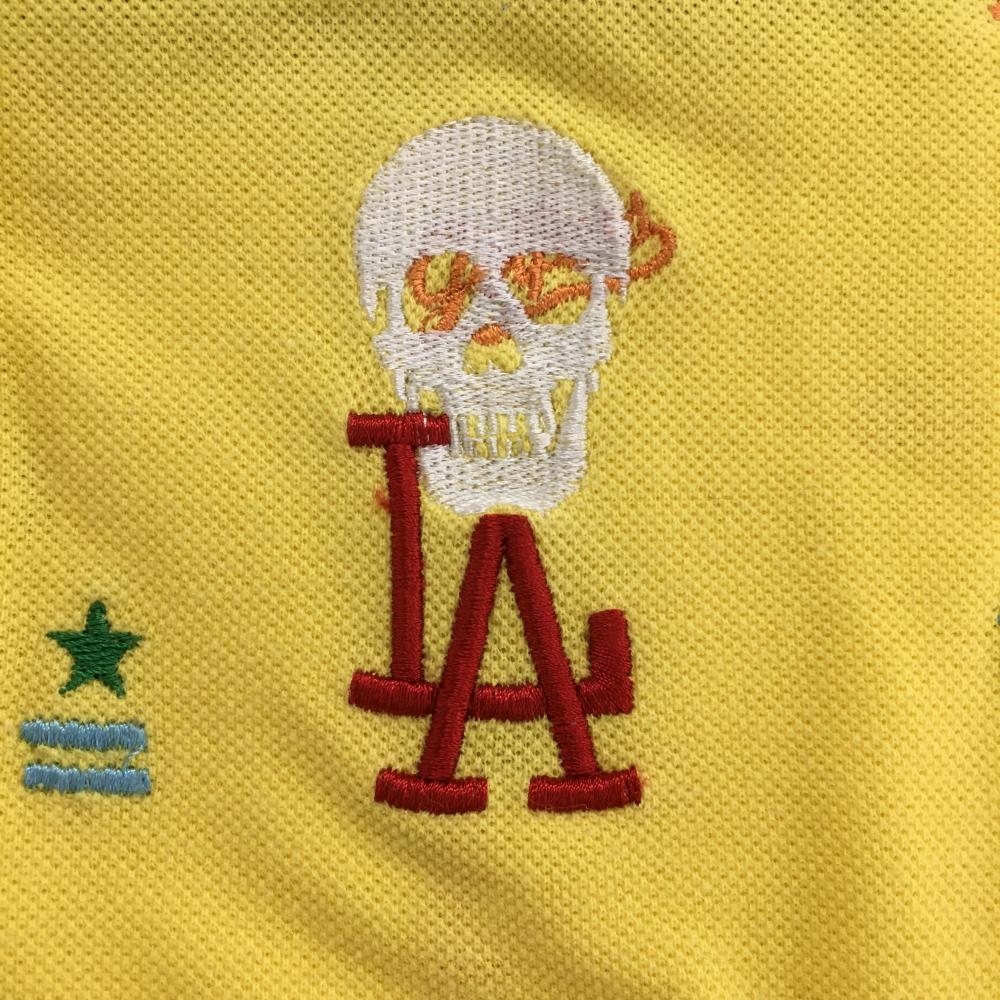 【超美品】マークアンドロナ 半袖ポロシャツ イエロー×マルチ 刺しゅう総柄 スカル レディース S ゴルフウェア MARK&LONA