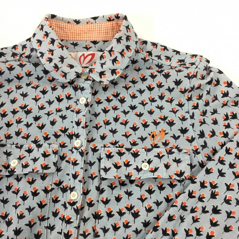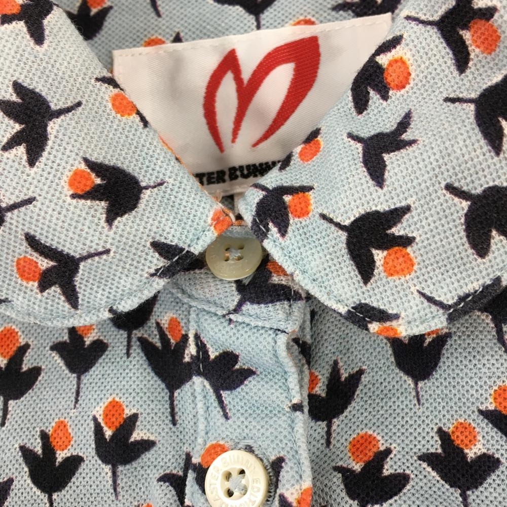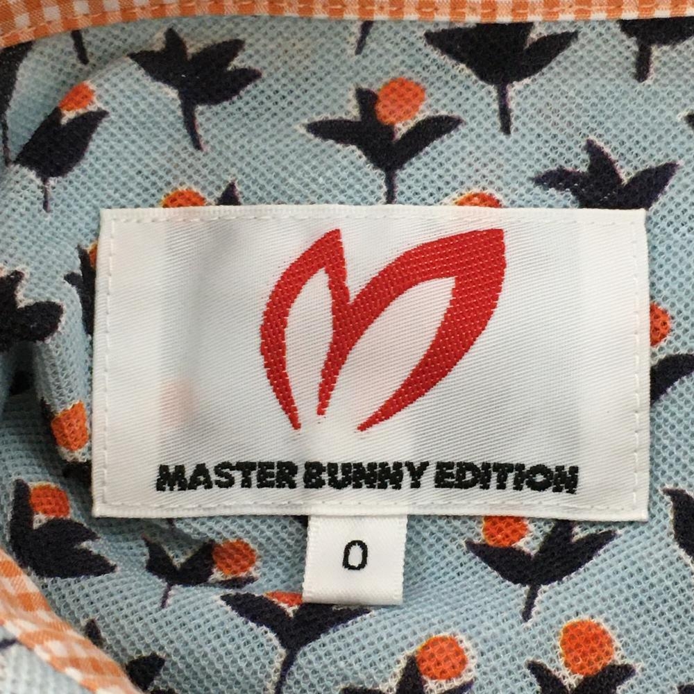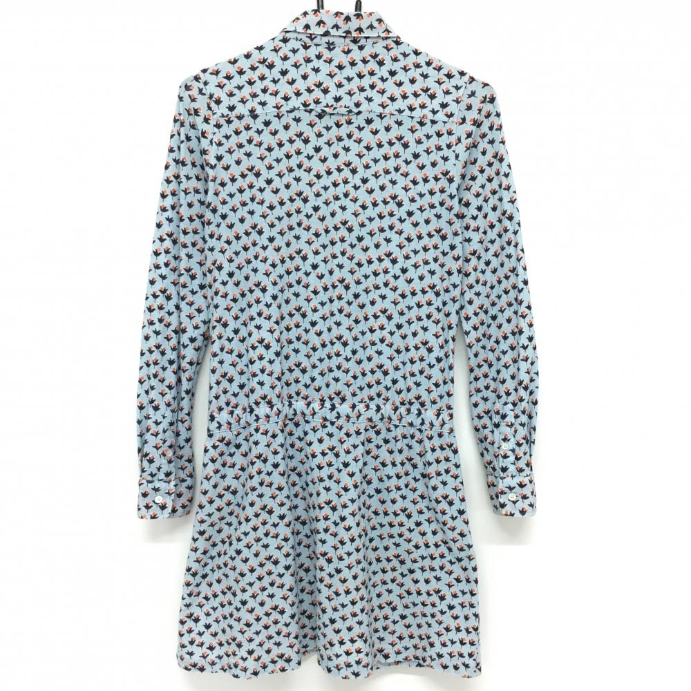 マスターバニー 長袖ポロワンピース ライトブルー×レッド 総柄 レディース 0(S) ゴルフウェア MASTER BUNNY EDITION