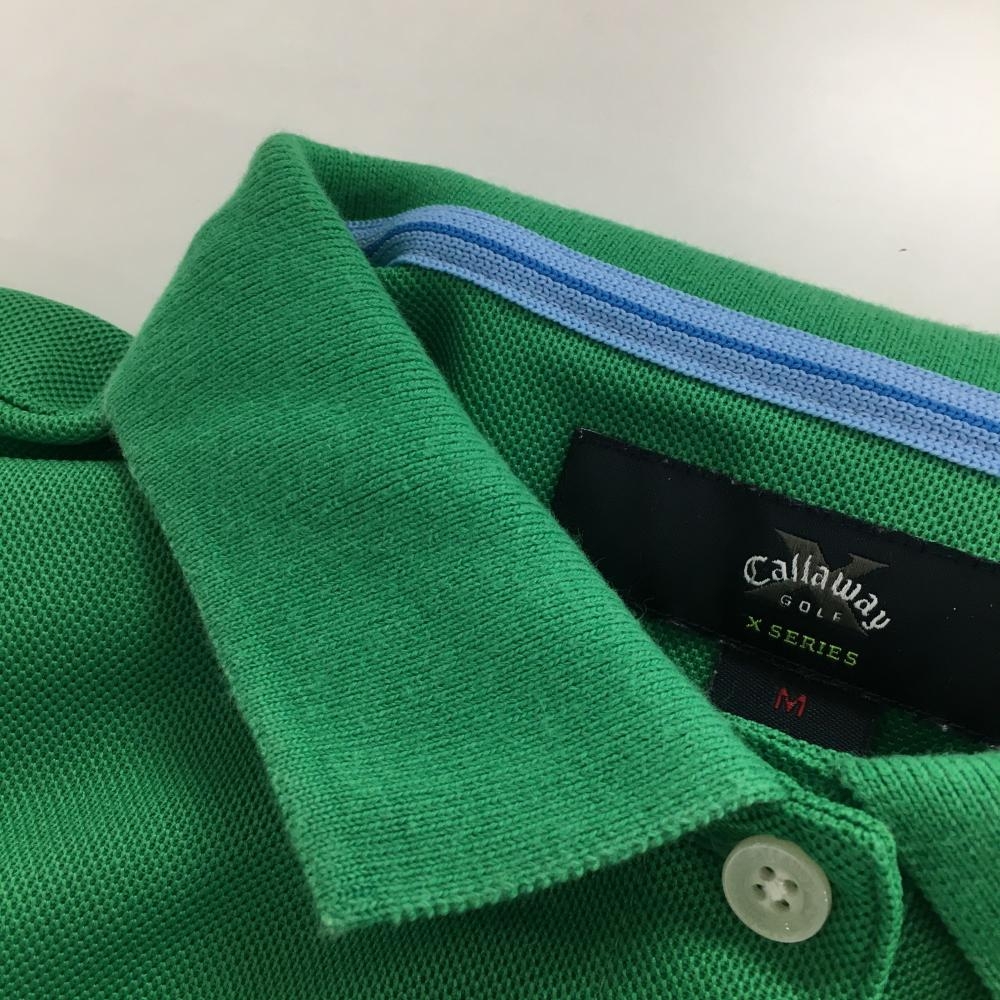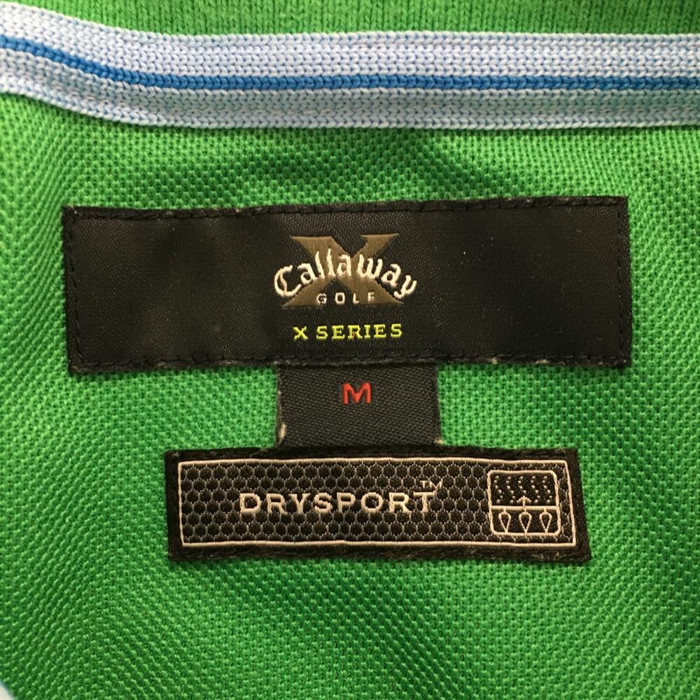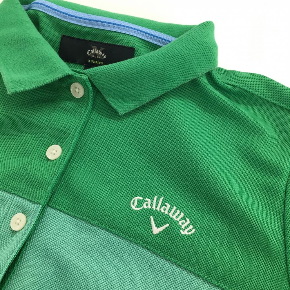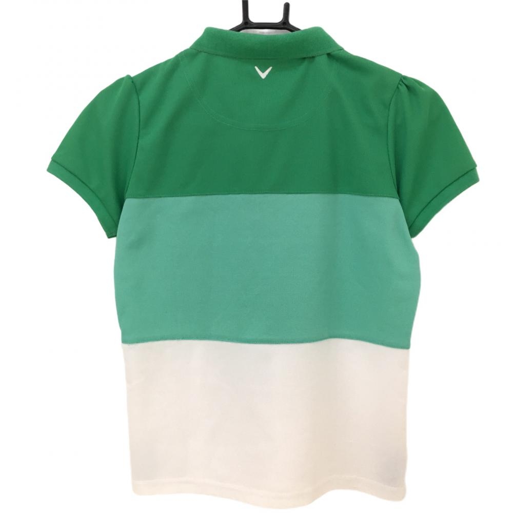 キャロウェイ 半袖ポロシャツ グリーン×白 パフスリーブ ロゴ刺しゅう レディース M ゴルフウェア Callaway