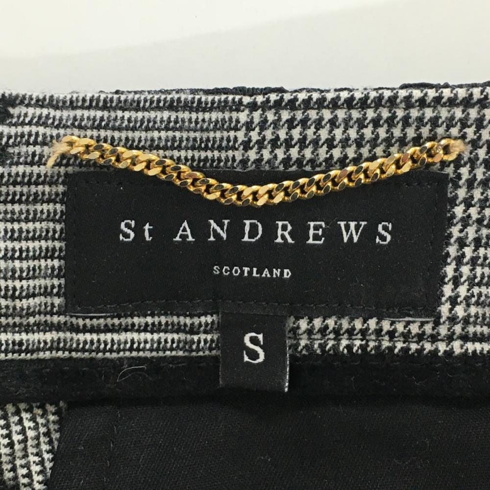【超美品】セントアンドリュース パンツ 黒×白 グレンチェック 上部レース ウール96% レディース S ゴルフウェア St ANDREWS