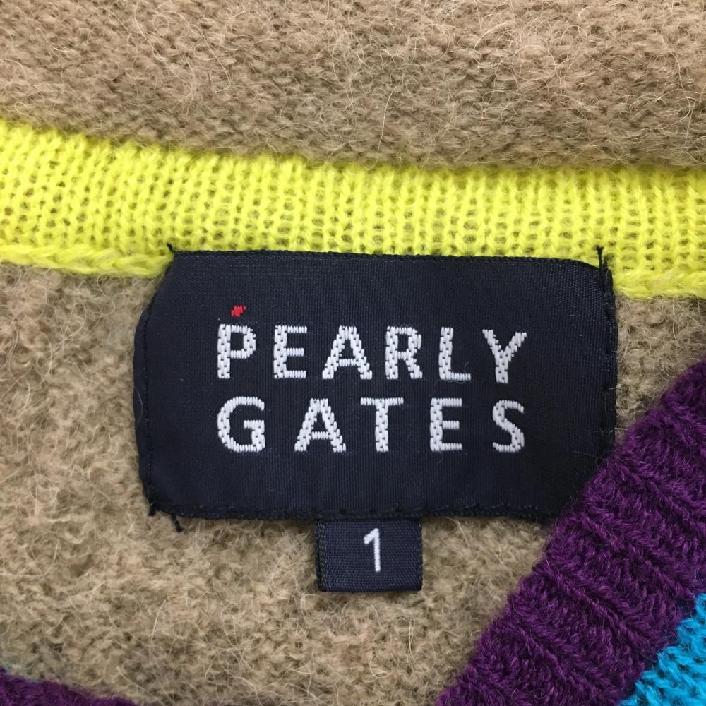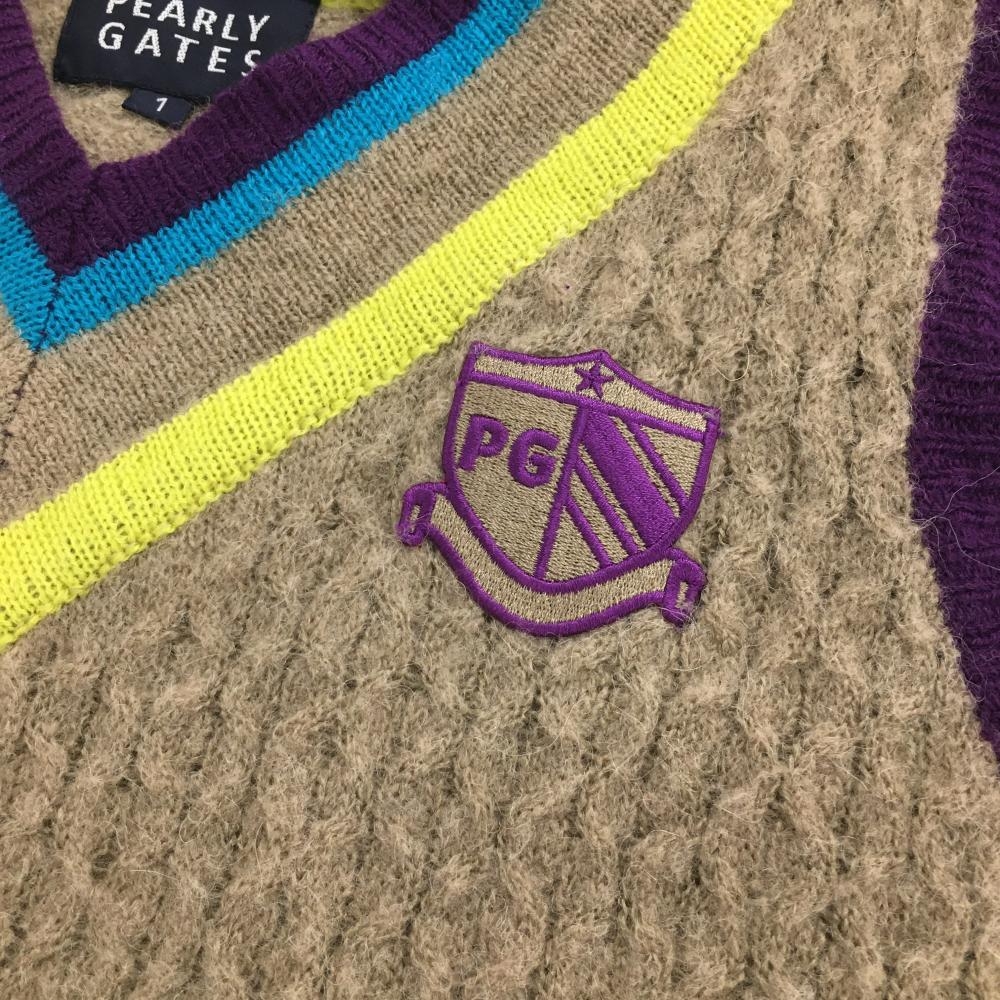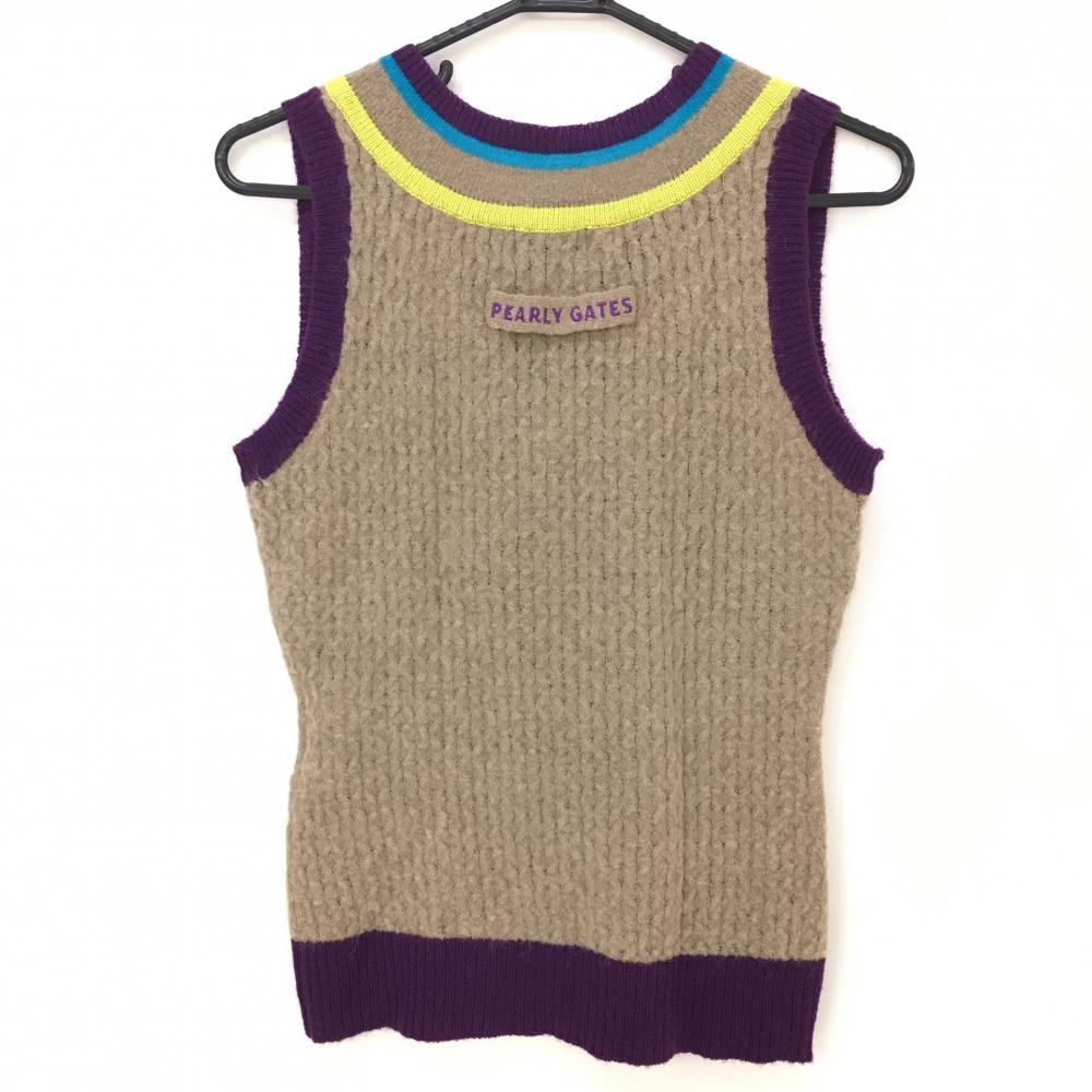 パーリーゲイツ ニットベスト ブラウン×パープル Vネック レディース 1(M) ゴルフウェア PEARLY GATES