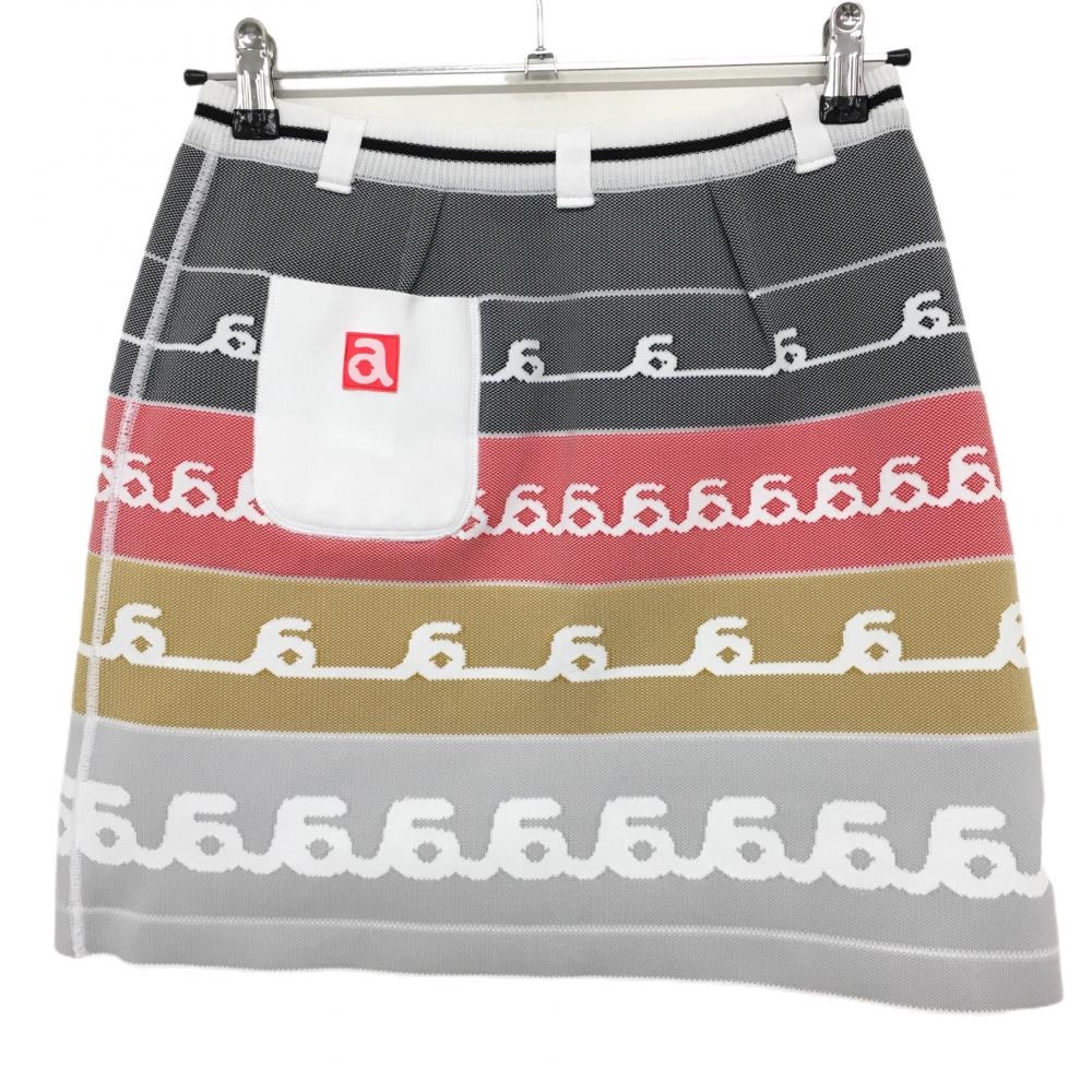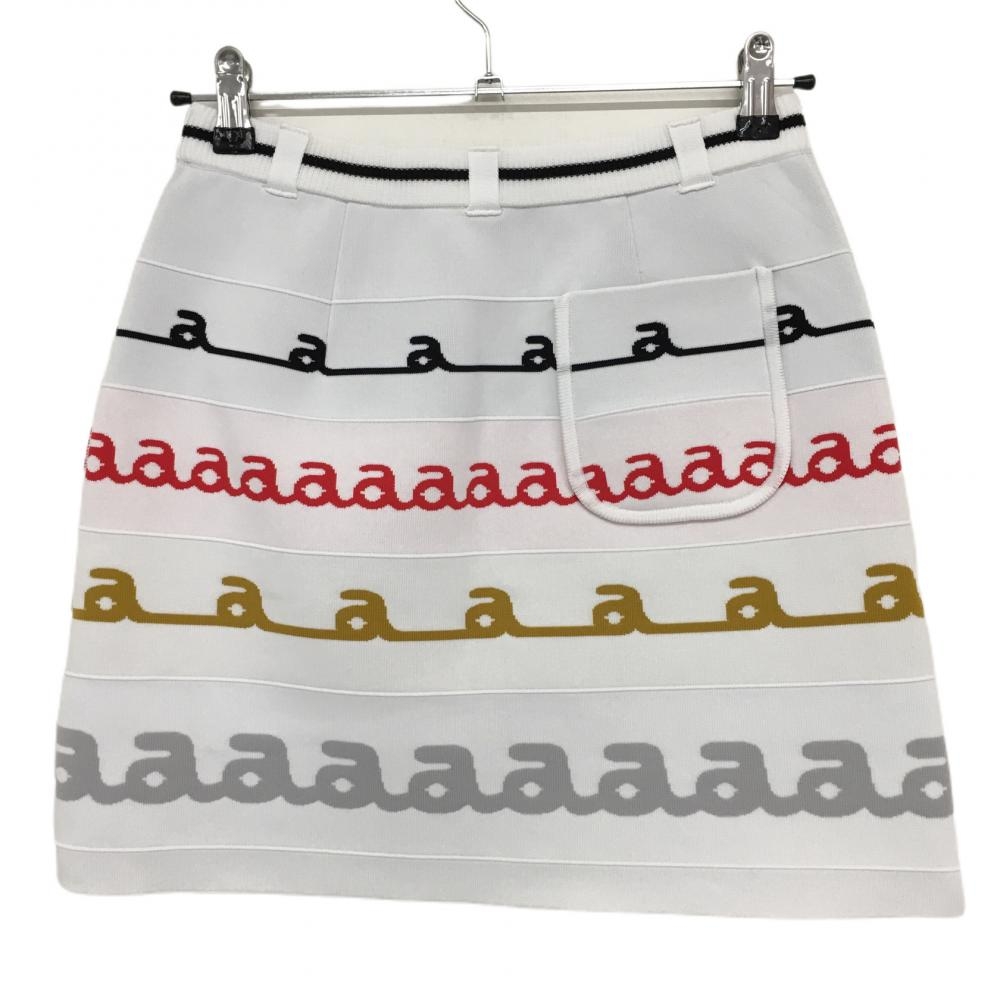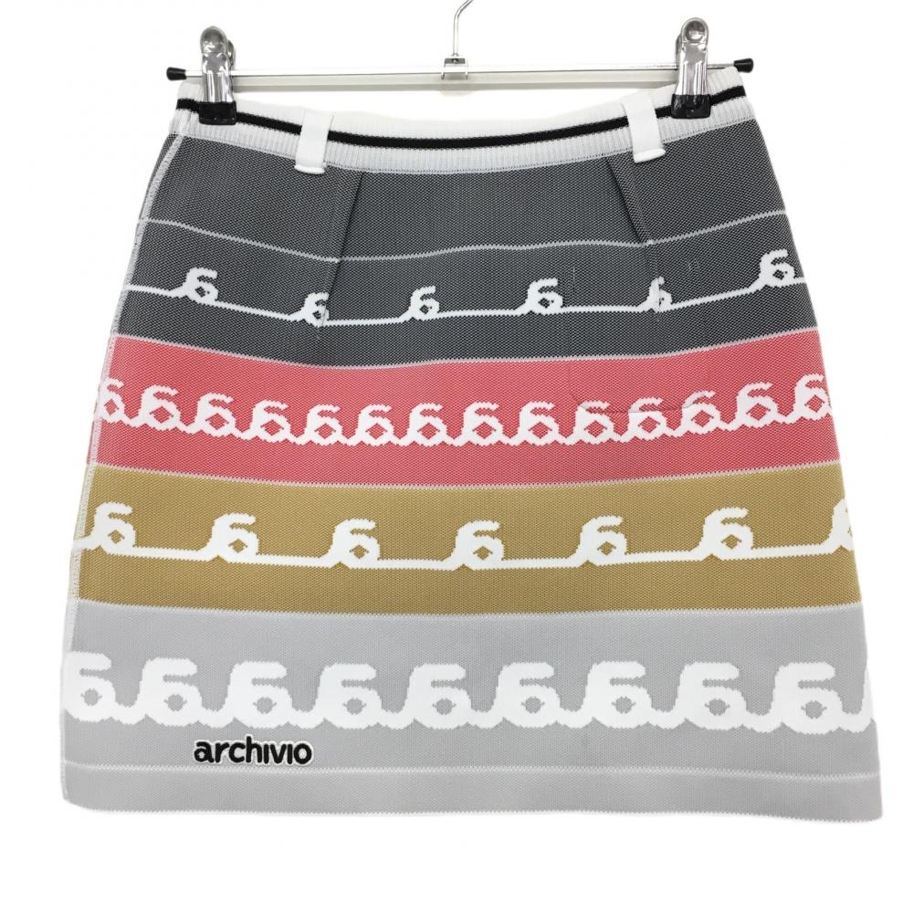 【美品】アルチビオ リバーシブルニットスカート 白×黒×レッド ロゴ総柄 ウエストゴム レディース 38(M) ゴルフウェア archivio