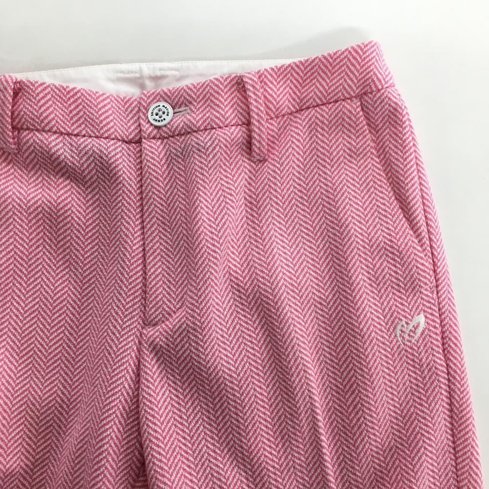 【超美品】マスターバニー パンツ ピンク×白 ヘリンボーン柄 レディース 0(S) ゴルフウェア MASTER BUNNY EDITION