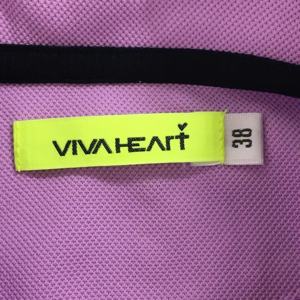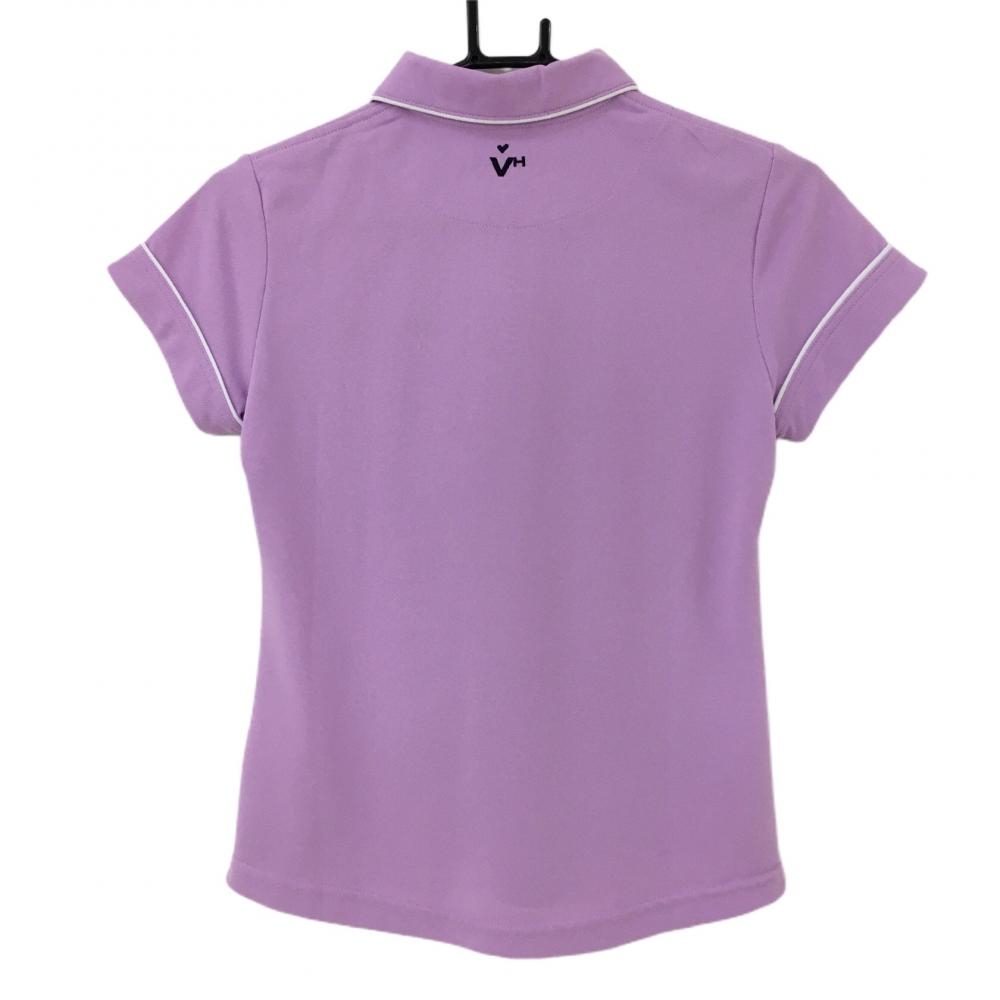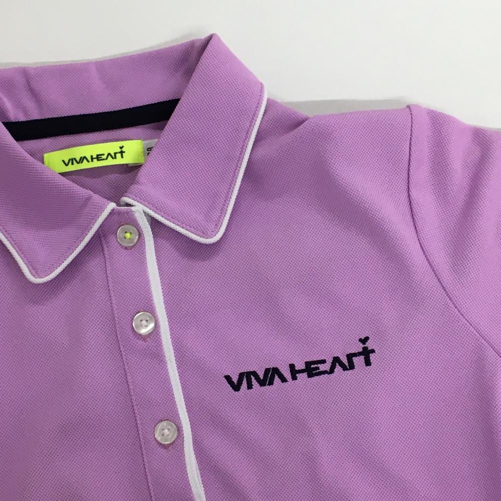 【超美品】ビバハート 半袖ポロシャツ ライトパープル×白 ロゴ刺しゅう 襟、袖ライン レディース 38(S) ゴルフウェア VIVA HEART