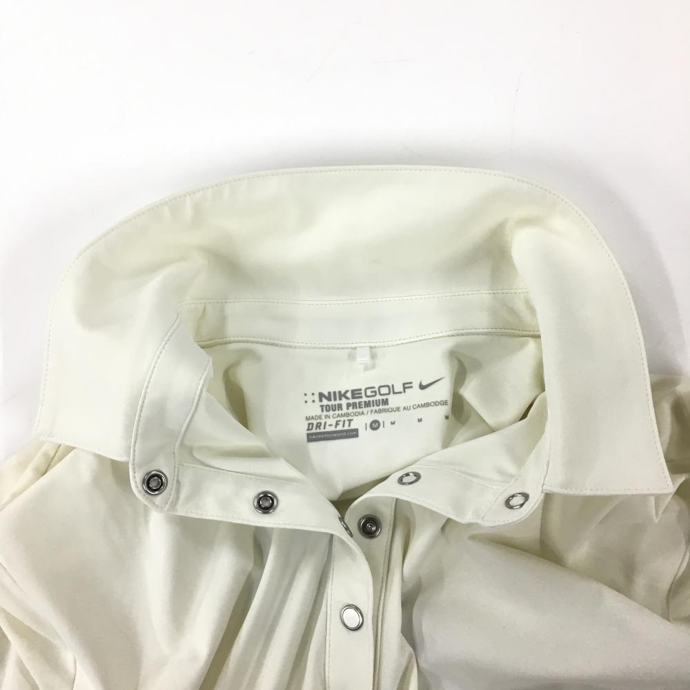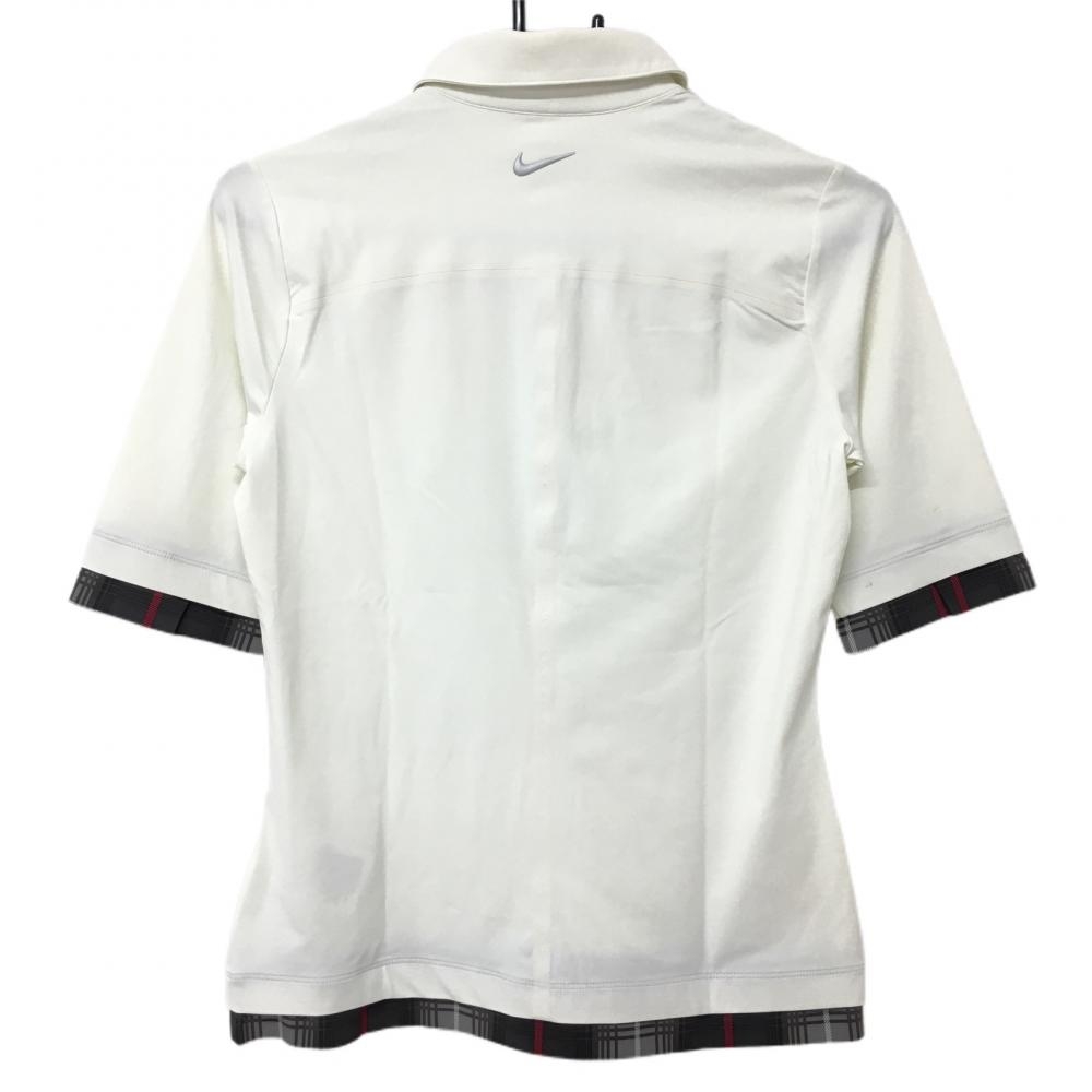 ナイキゴルフ 五分袖ポロシャツ 白×グレー 一部チェック 重ね着風 スナップボタン DRI-FIT レディース M ゴルフウェア NIKE