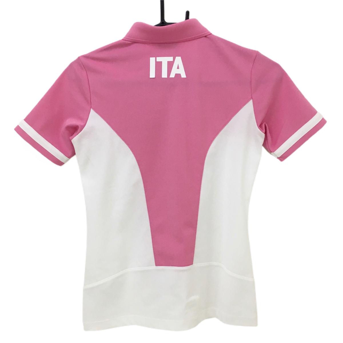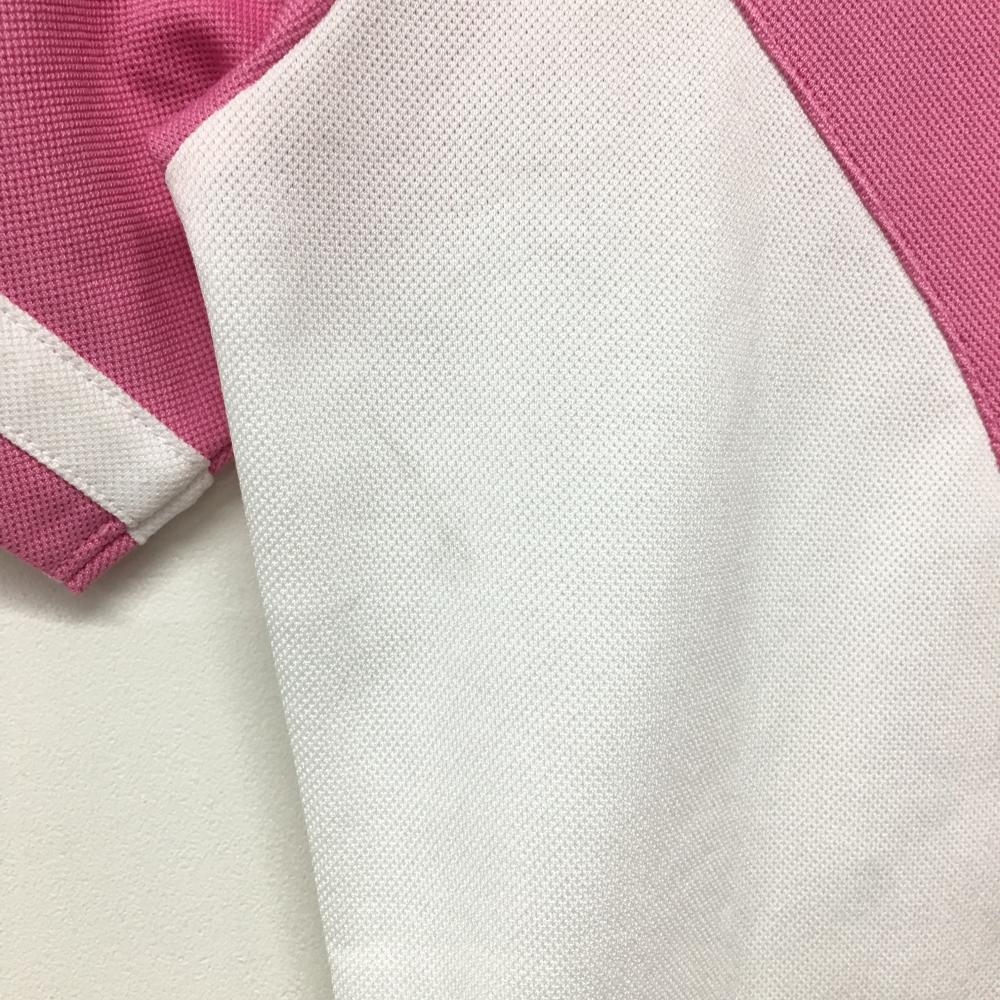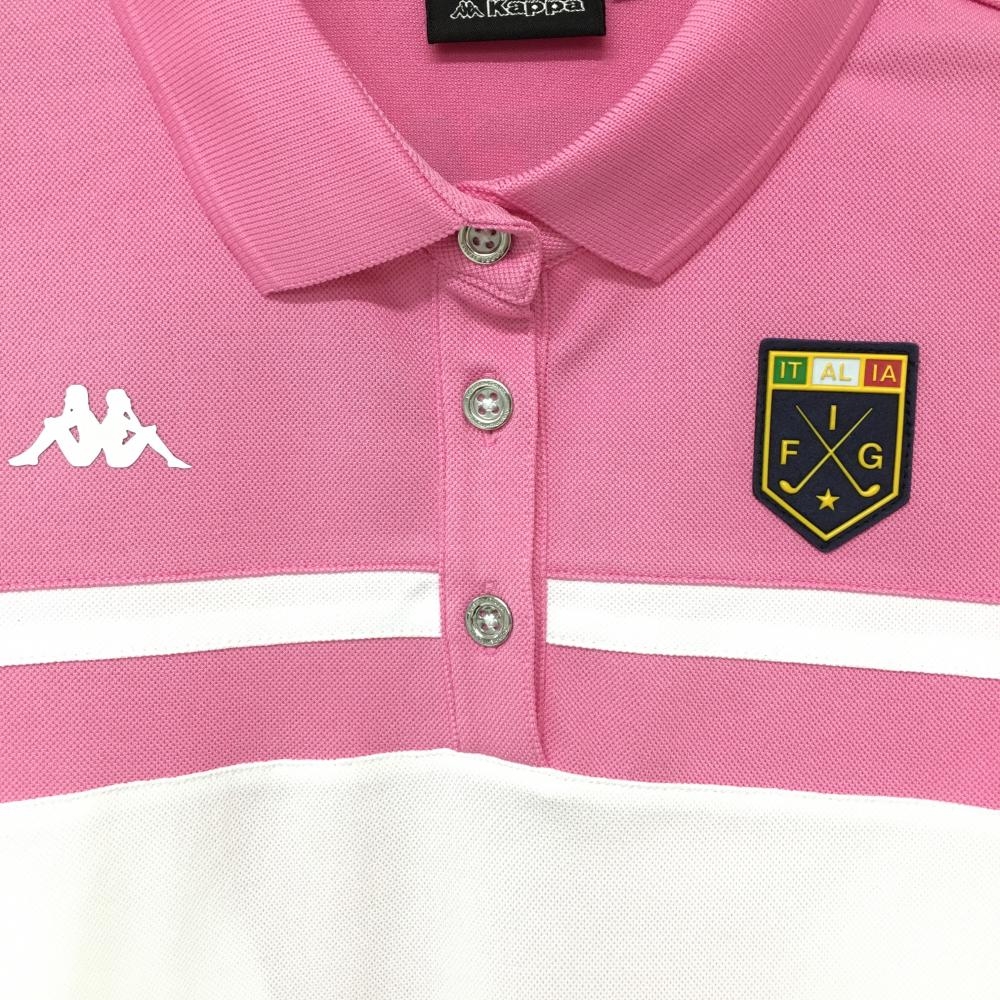 【美品】カッパ 半袖ポロシャツ 白×ピンク 胸元ロゴ 袖ライン レディース S ゴルフウェア Kappa