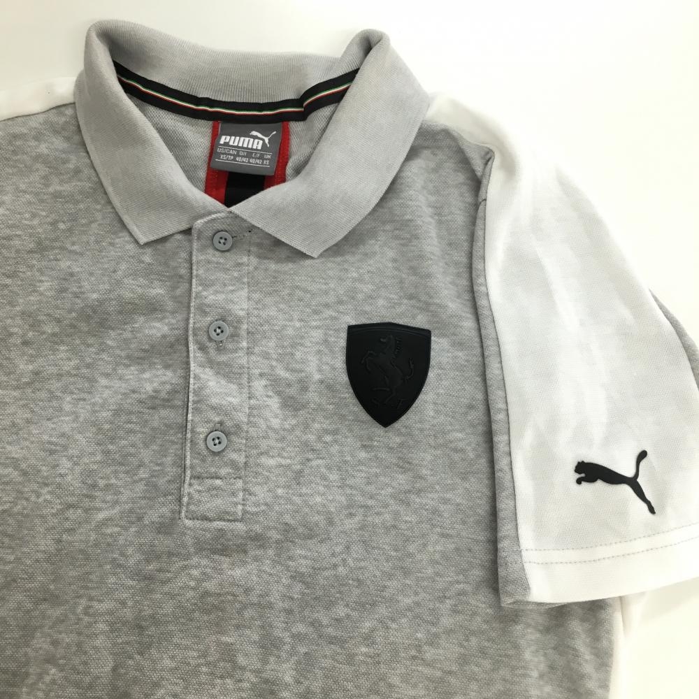 【美品】プーマ 半袖ポロシャツ グレー×白 背面レッドライン メンズ US XS ゴルフウェア PUMA