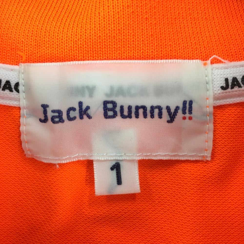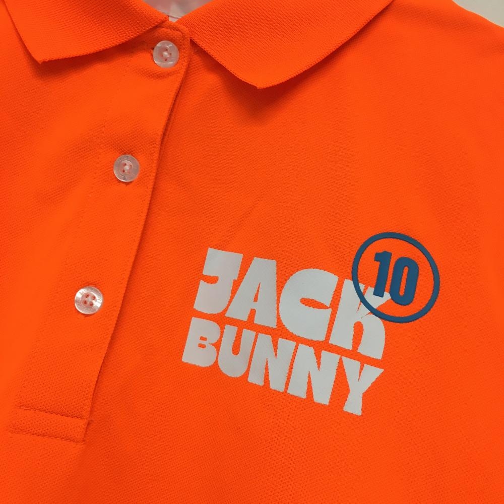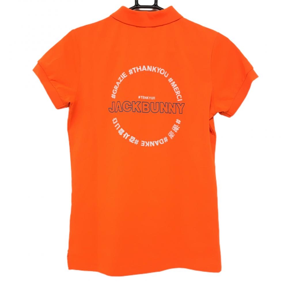 【美品】ジャックバニー 半袖ポロシャツ 蛍光オレンジ×白 背面ビッグプリント レディース 1(M) ゴルフウェア Jack Bunny