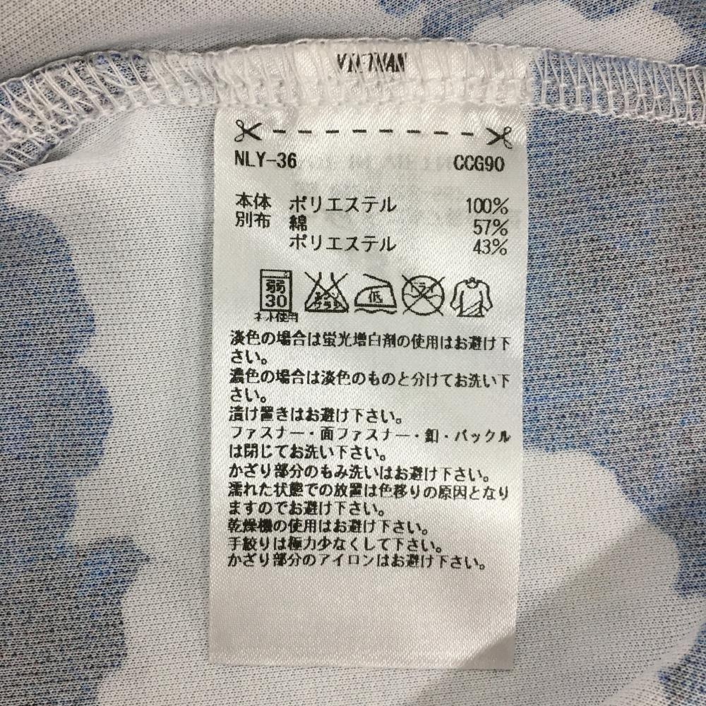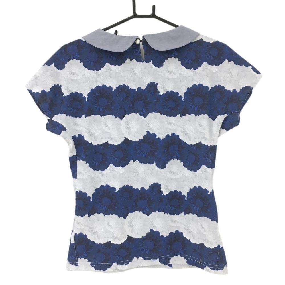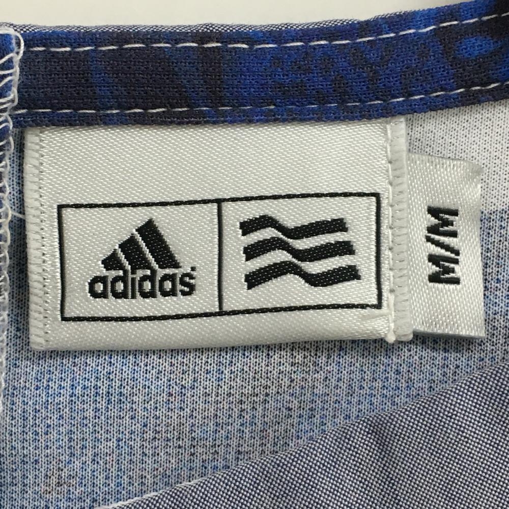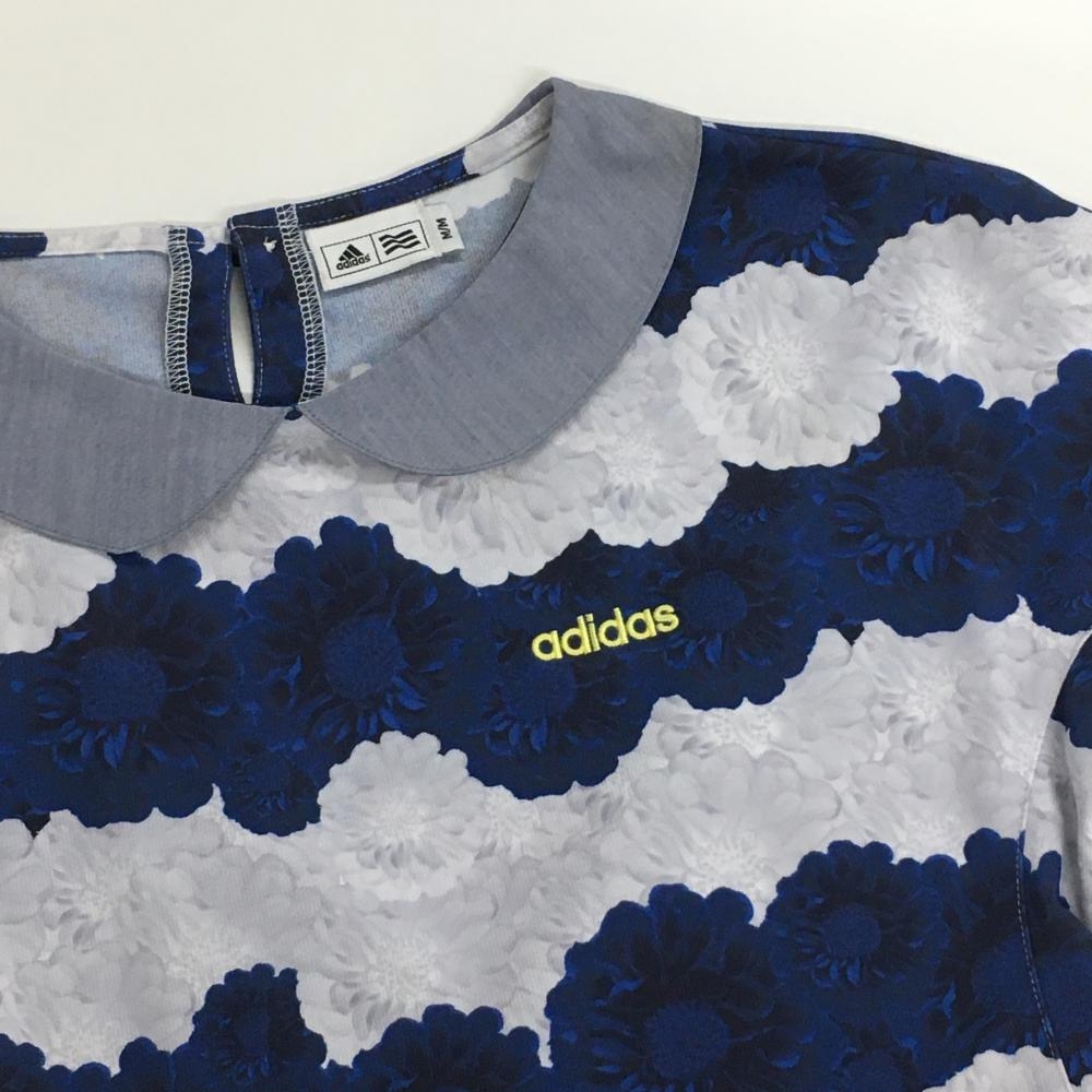 【超美品】アディダス 襟付き半袖シャツ ネイビー×ライトブルー 花柄ボーダー レディース M/M ゴルフウェア adidas