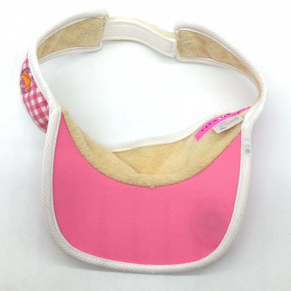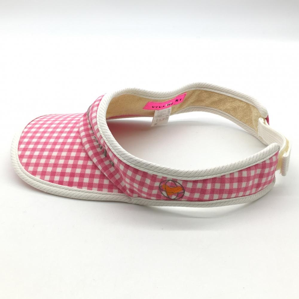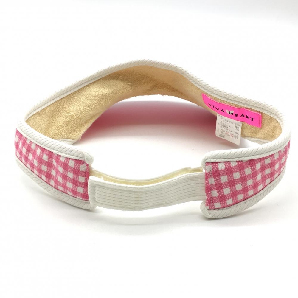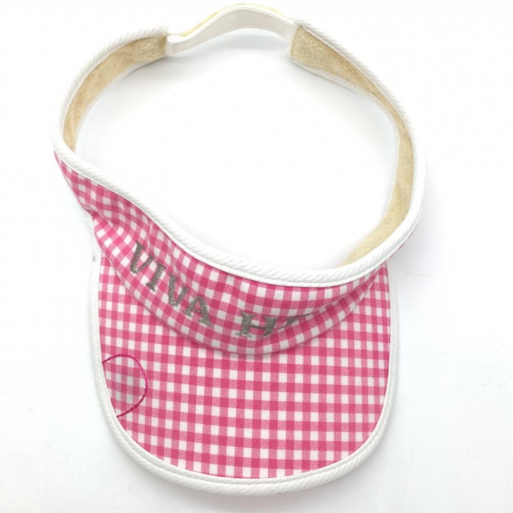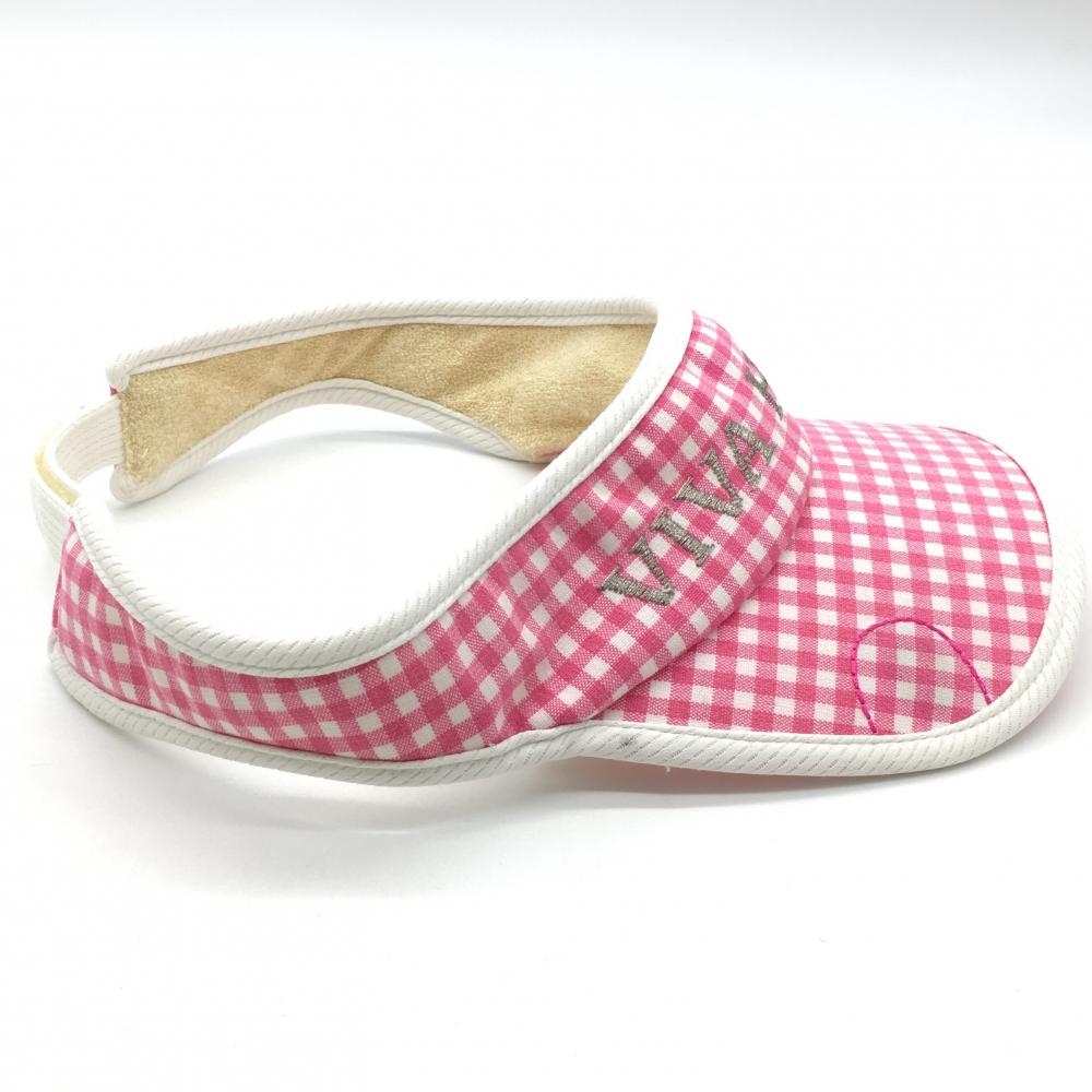 【美品】ビバハート サンバイザー ピンク×白 ギンガムチェック ロゴ刺しゅう レディース 40 ゴルフウェア VIVA HEART