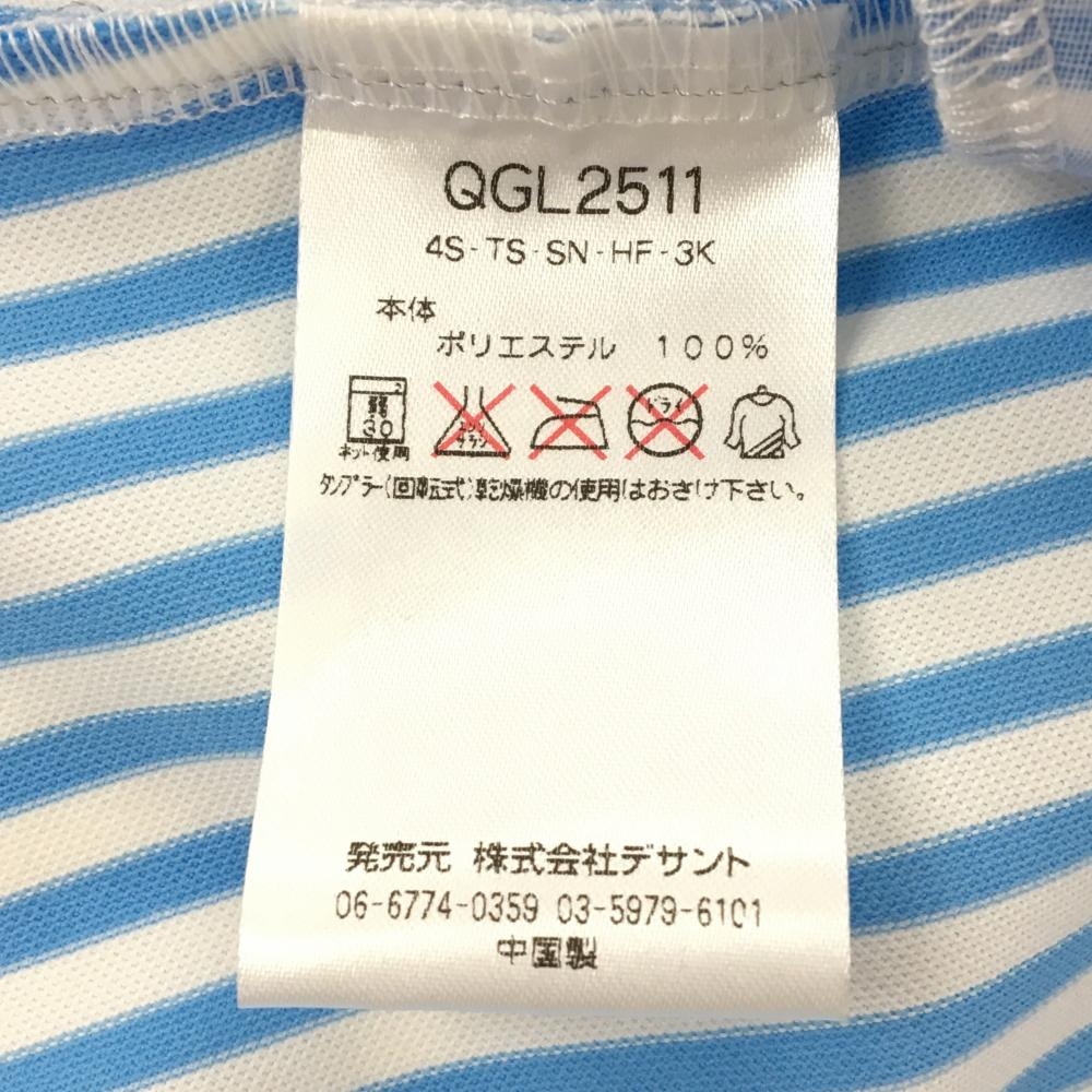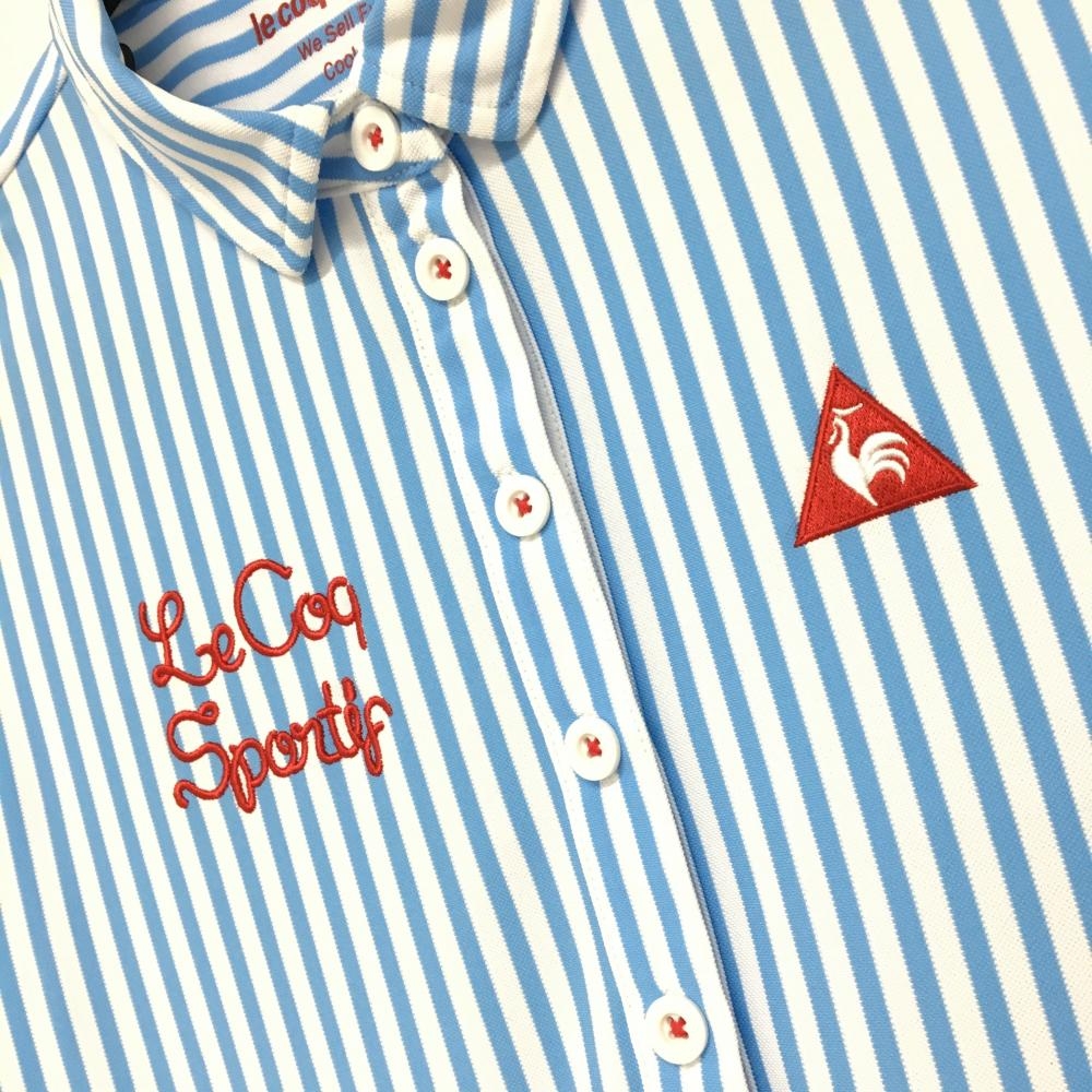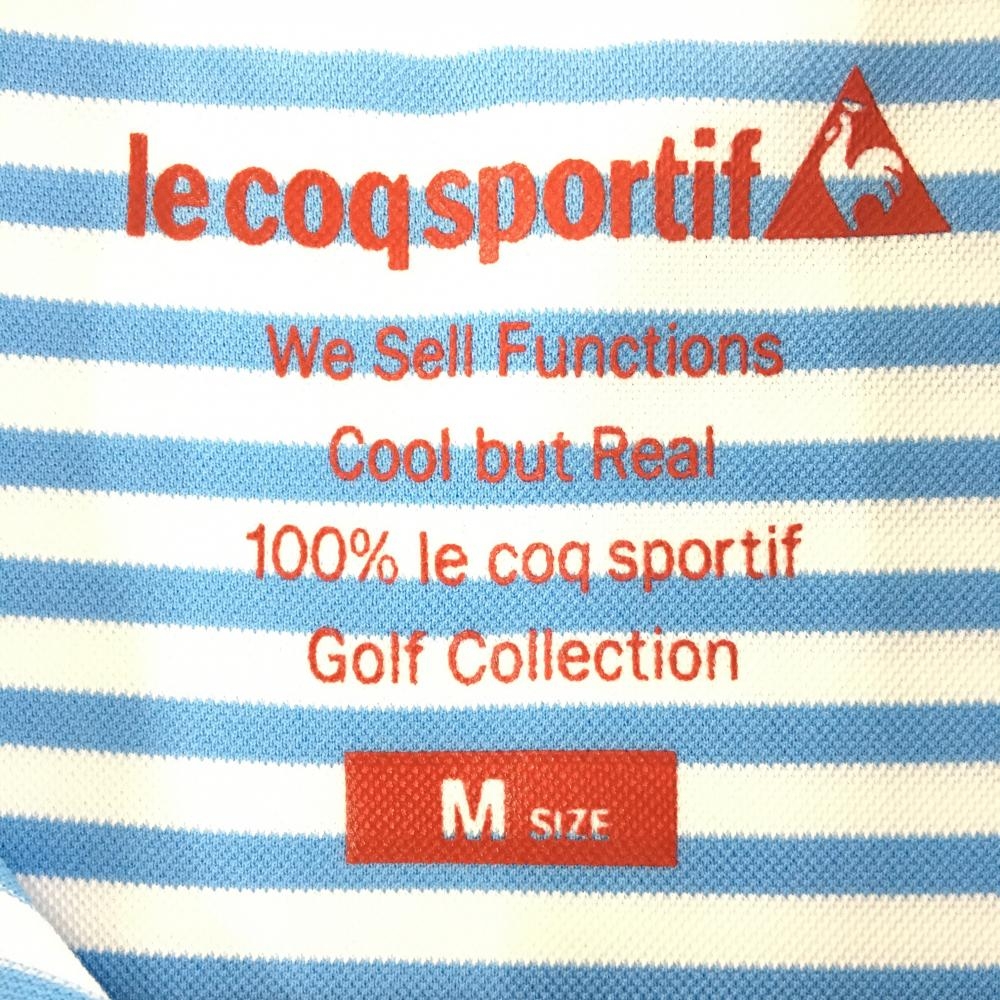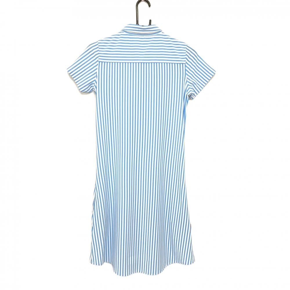 【超美品】ルコック 半袖ポロワンピース 白×ライトブルー ストライプ レディース M ゴルフウェア le coq sportif