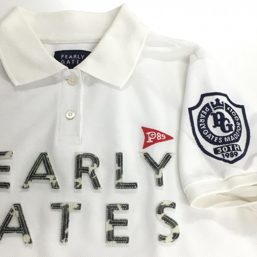 パーリーゲイツ 半袖ポロシャツ 白 フェルトロゴ カモフラ 30周年 レディース 1(M) ゴルフウェア PEARLY GATES