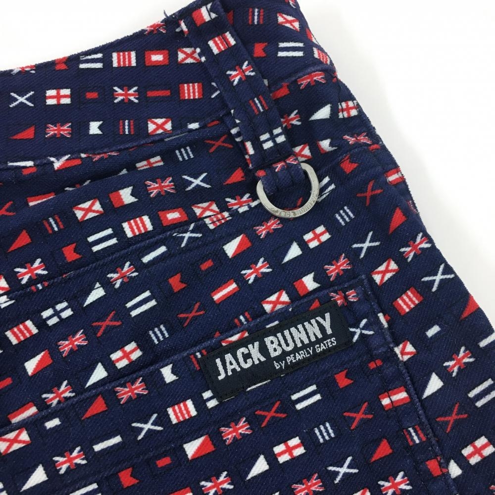 【美品】ジャックバニー パンツ ネイビー×レッド 国旗柄 レディース 0(S) ゴルフウェア Jack Bunny
