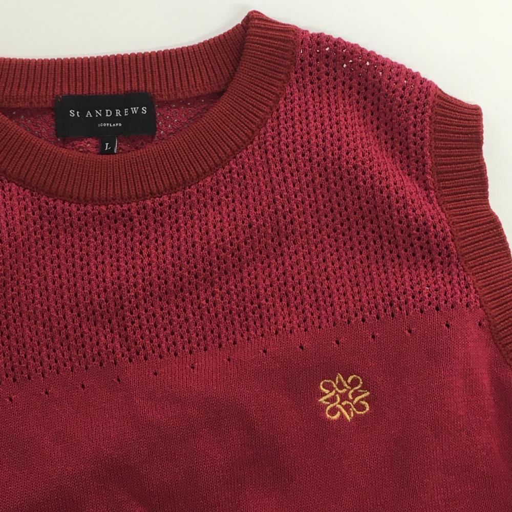 セントアンドリュース ニットベスト ボルドー 一部透かし編み ロゴ刺しゅう リブよれ レディース L ゴルフウェア St ANDREWS