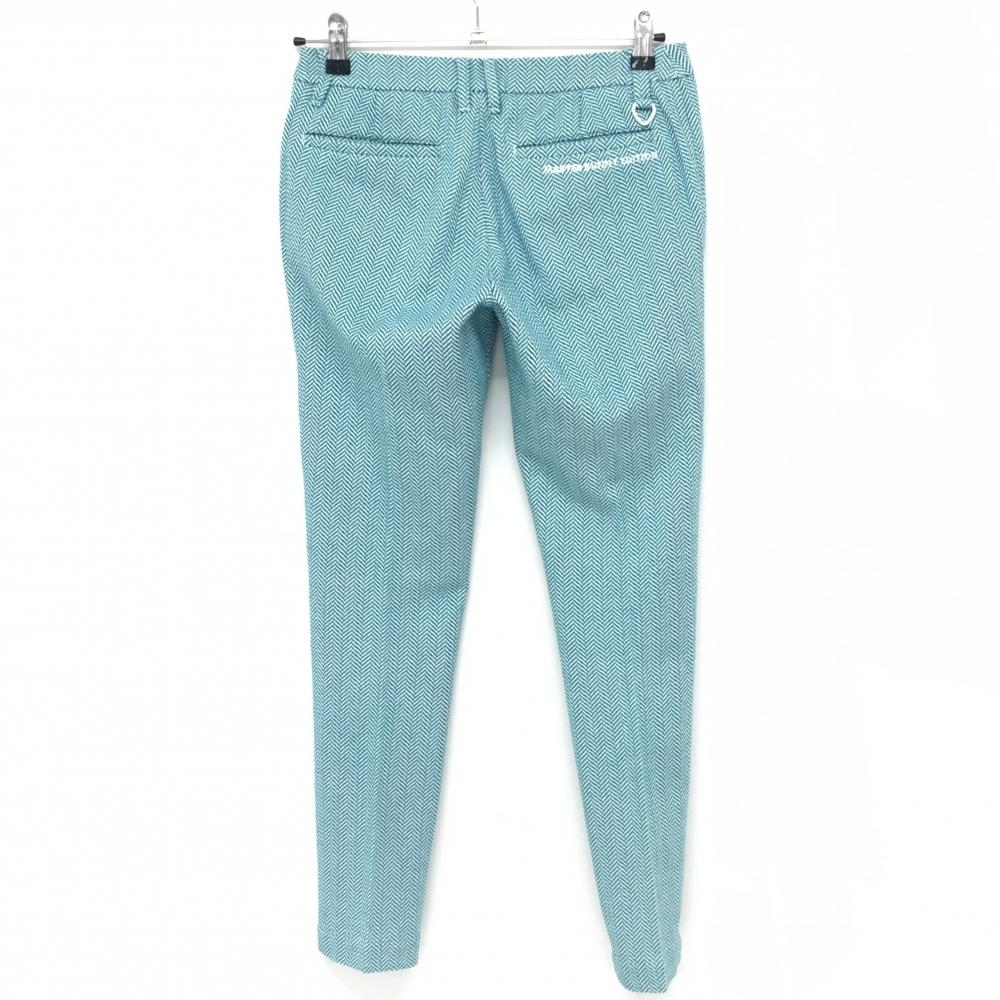 【美品】マスターバニー パンツ グリーン×白 ヘリンボーン柄 レディース 0(S) ゴルフウェア MASTER BUNNY EDITION