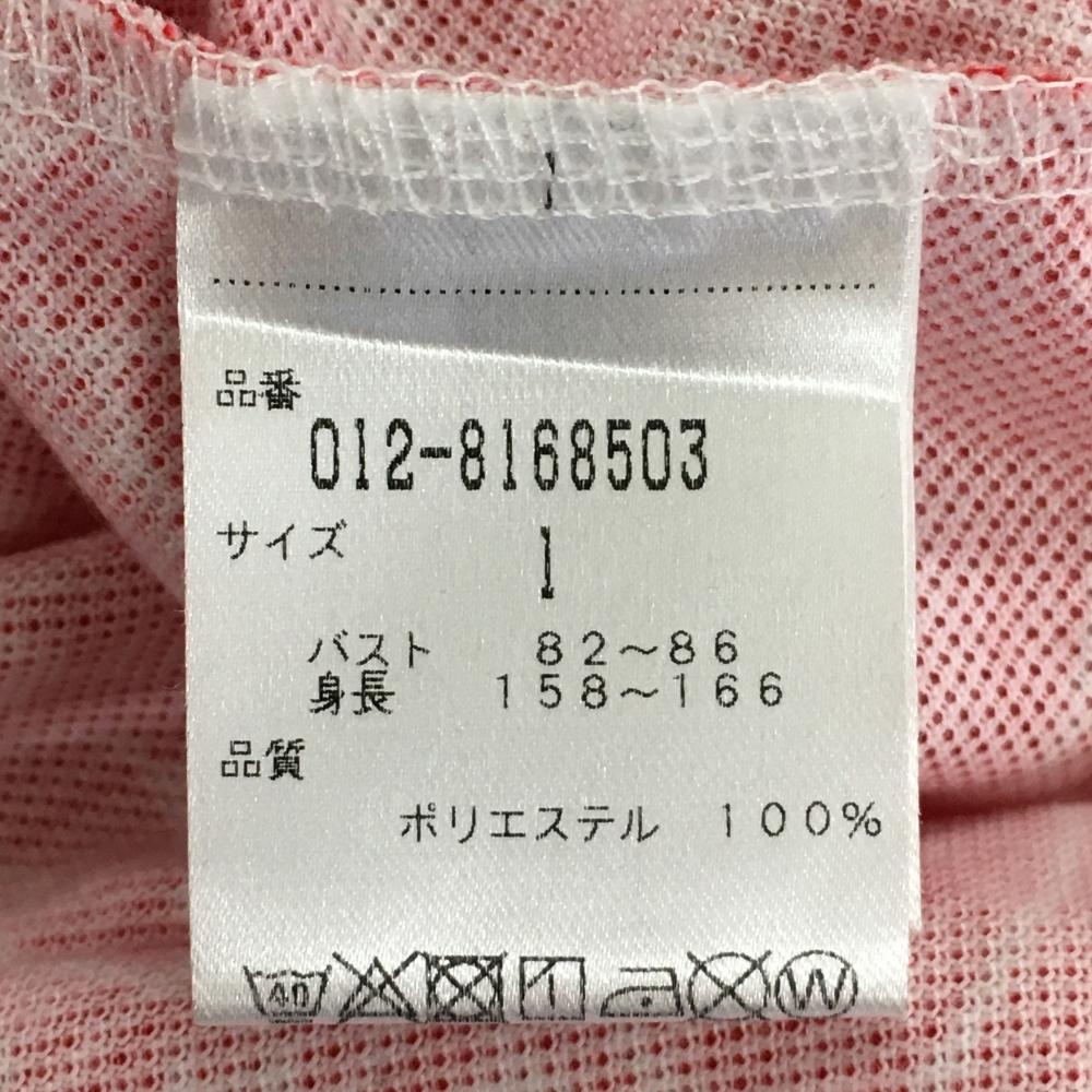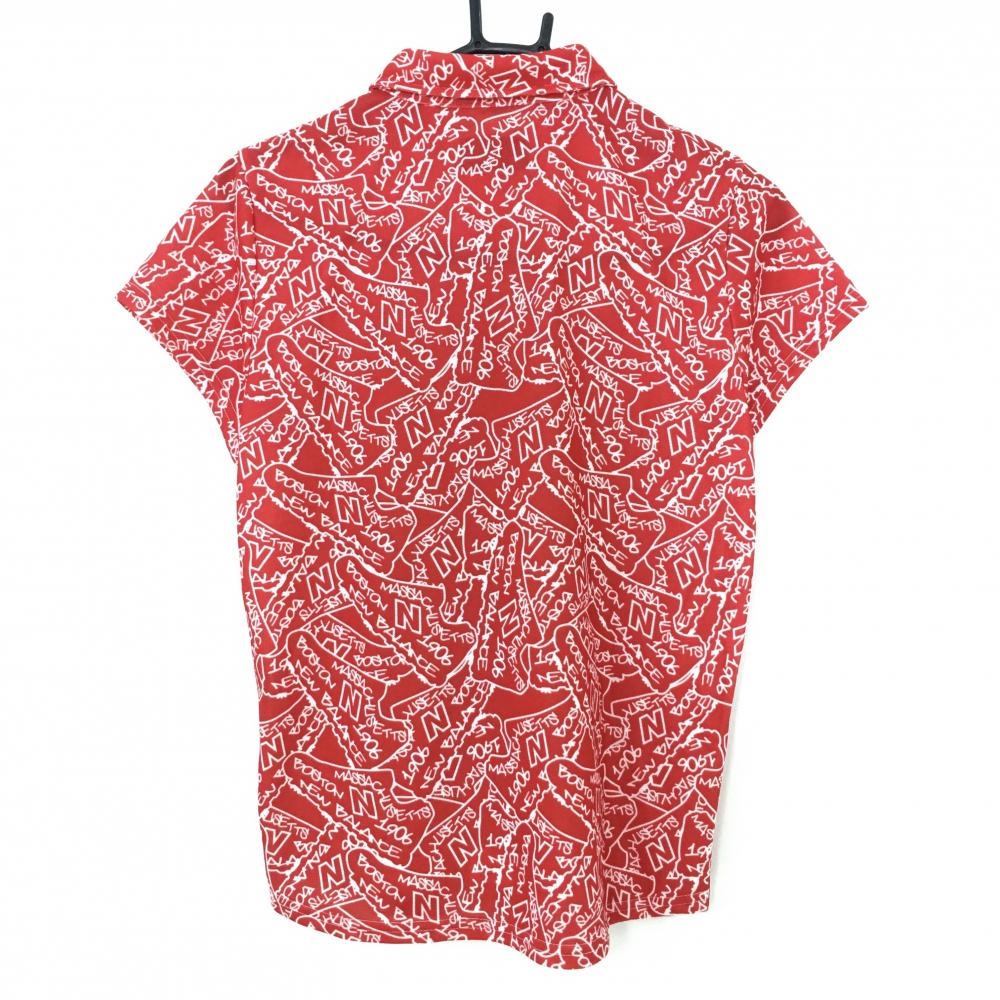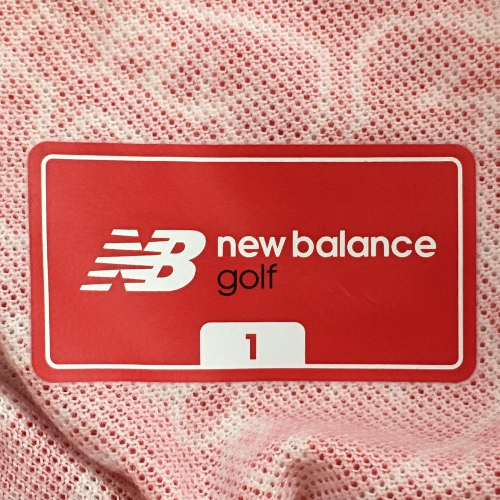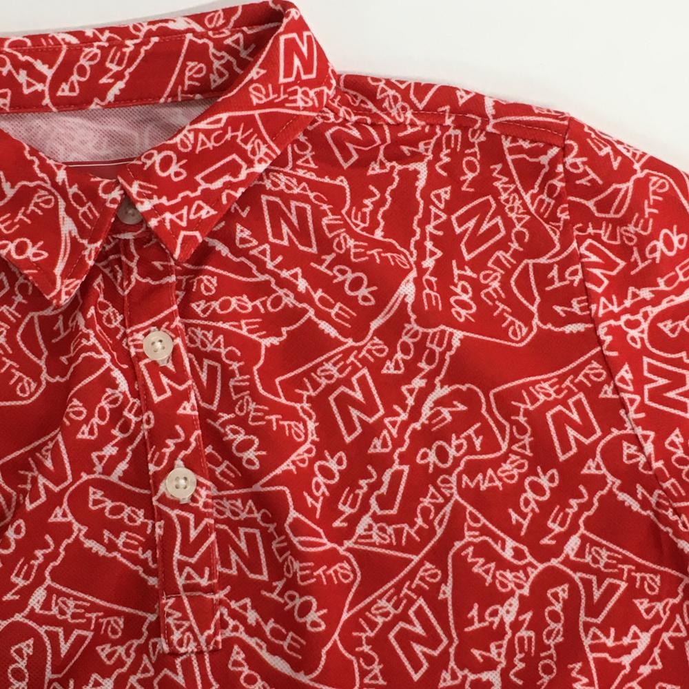 【超美品】ニューバランス 半袖ポロシャツ レッド×白 総柄 レディース 1(M) ゴルフウェア New Balance