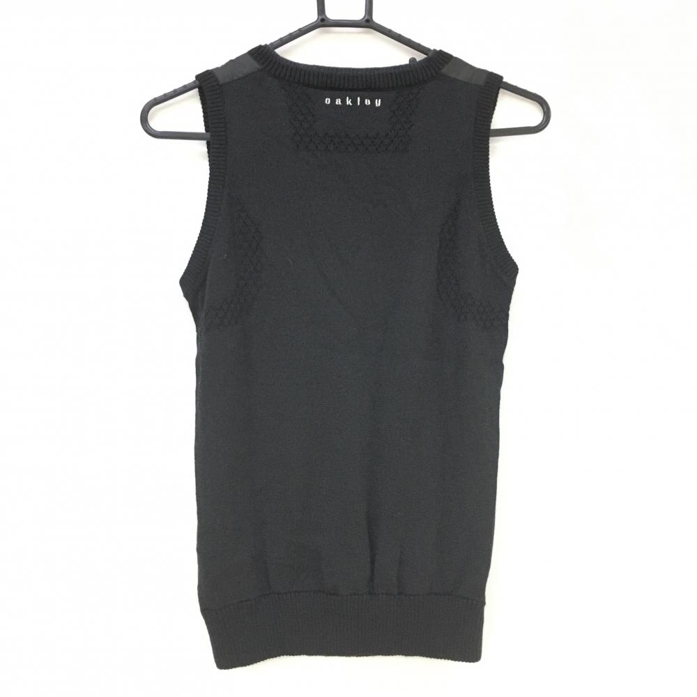 【超美品】オークリー ニットベスト 黒 前凹凸編み 肩異素材 Vネック レディース L ゴルフウェア Oakley