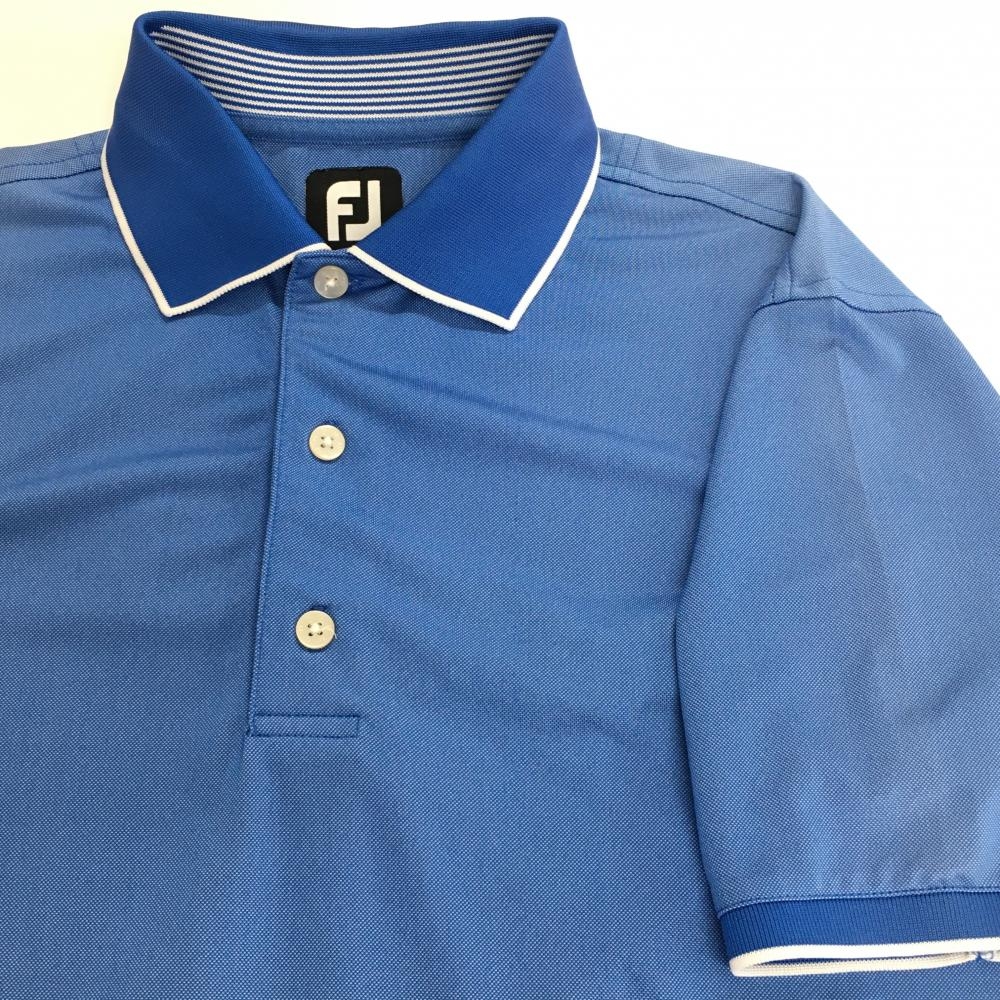 フットジョイ 半袖ポロシャツ ブルー×白 シンプル メンズ M ゴルフウェア FootJoy