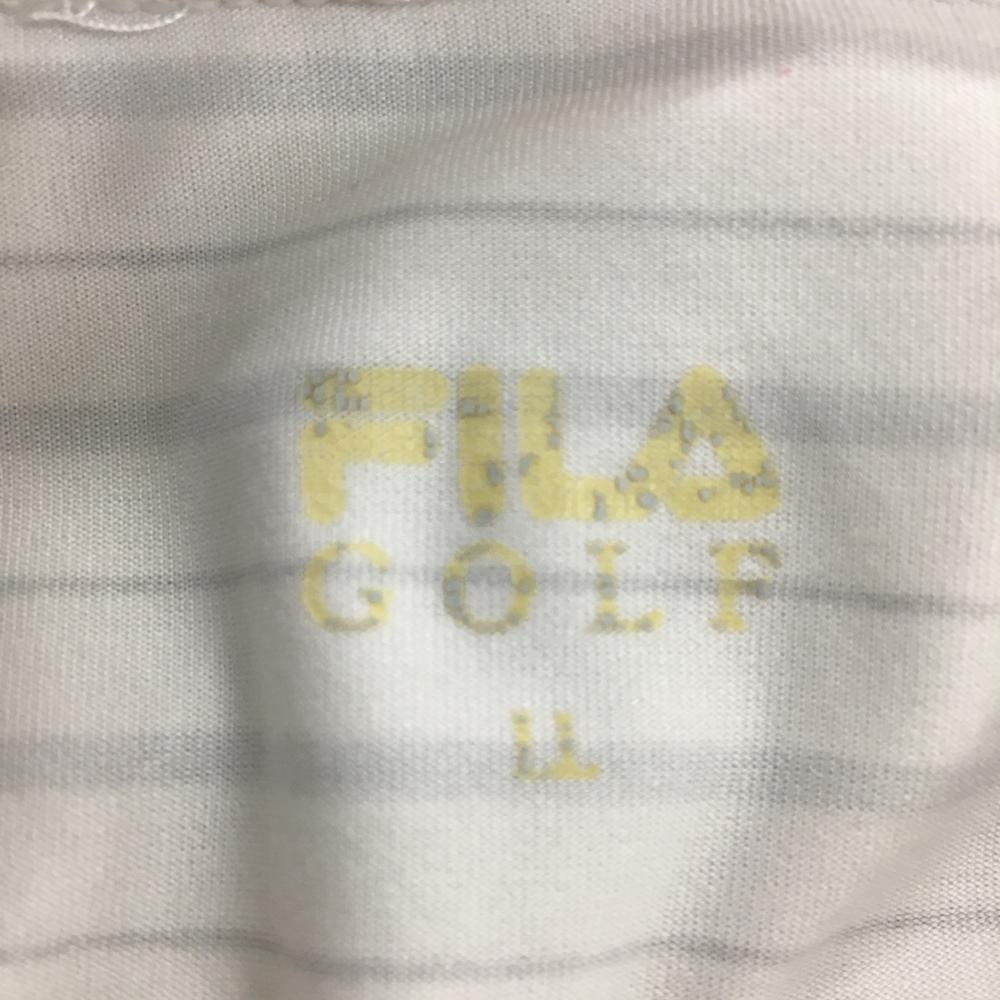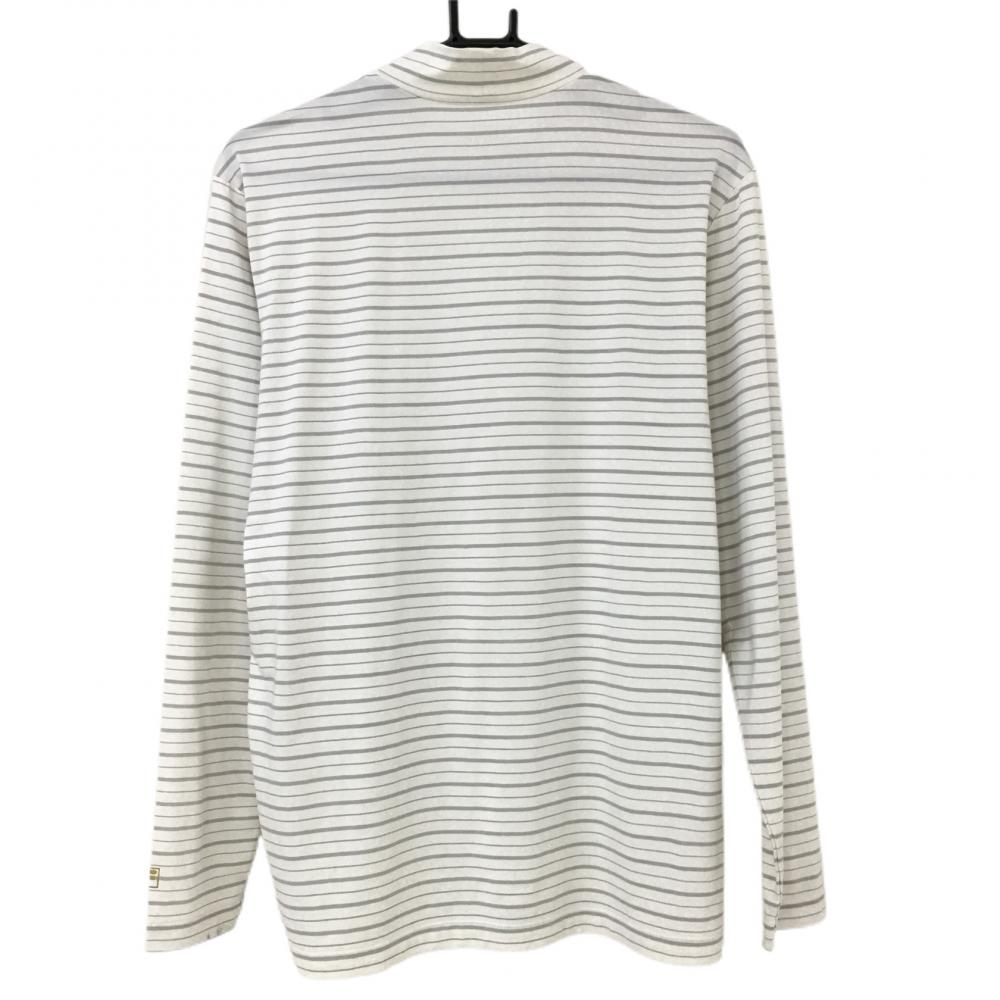 フィラゴルフ 長袖ハイネックシャツ 白×グレー ボーダー ロゴプリント ストレッチ インナー メンズ LL ゴルフウェア FILA GOLF