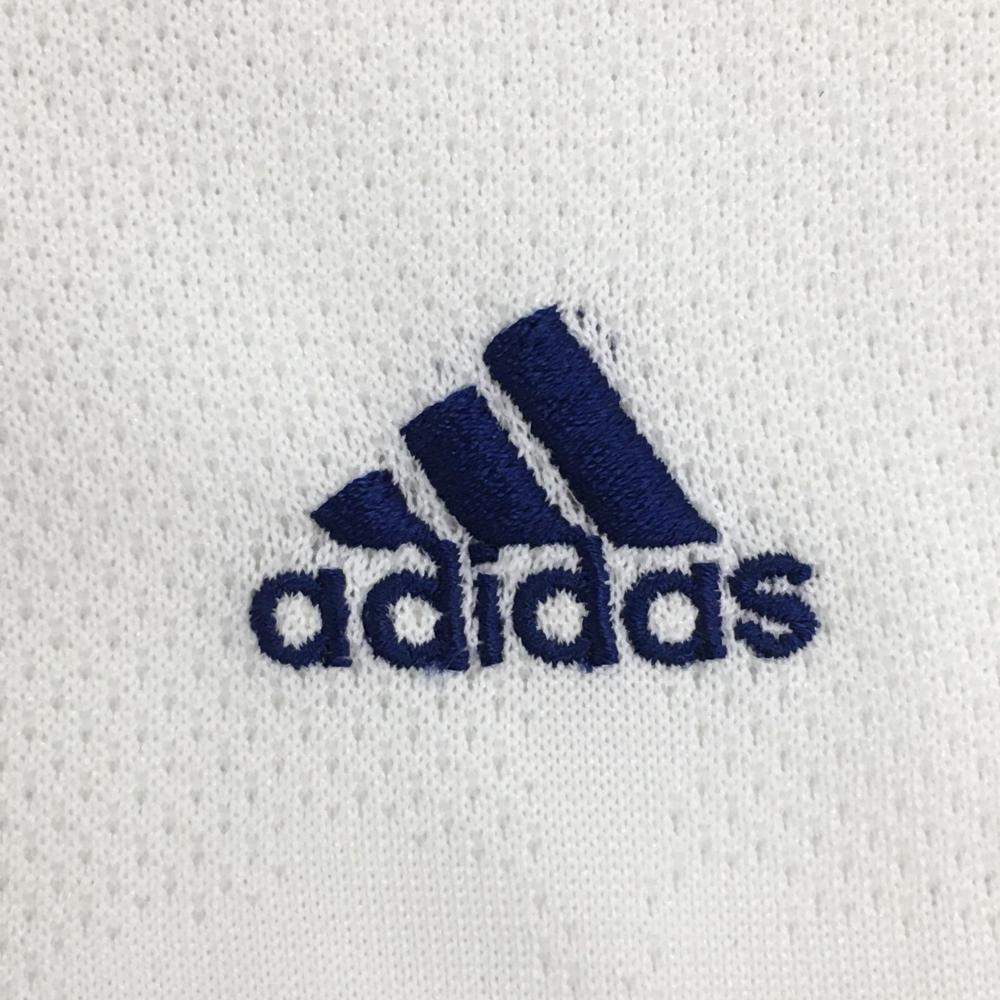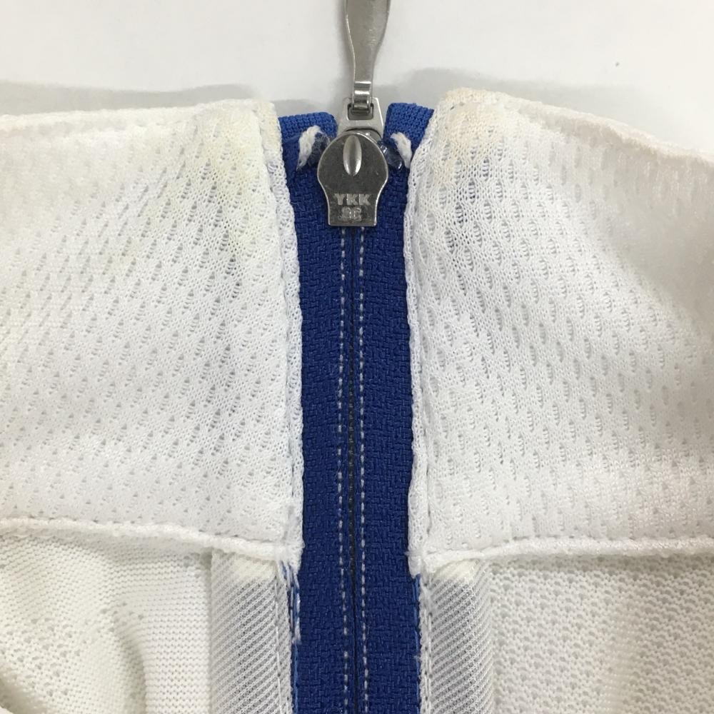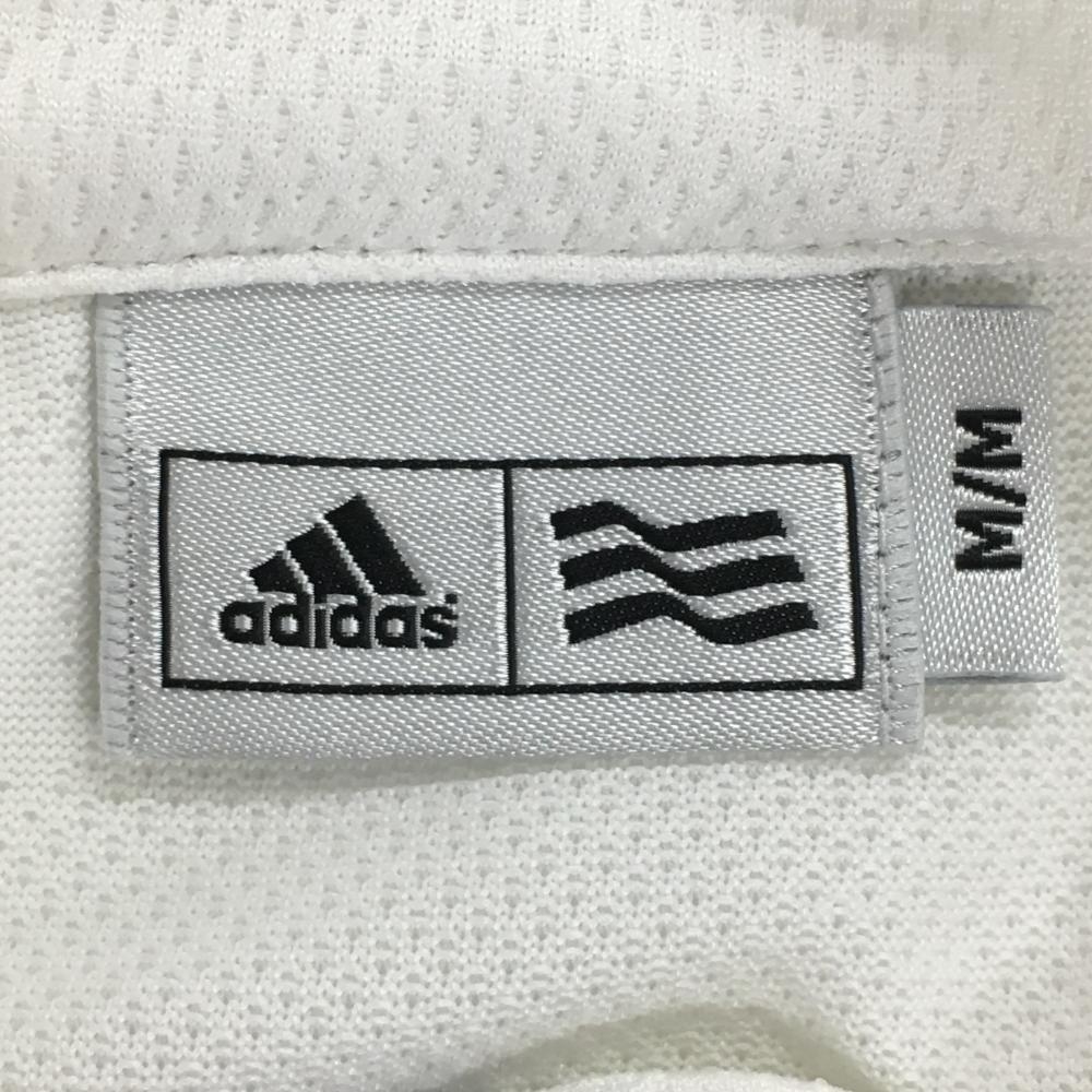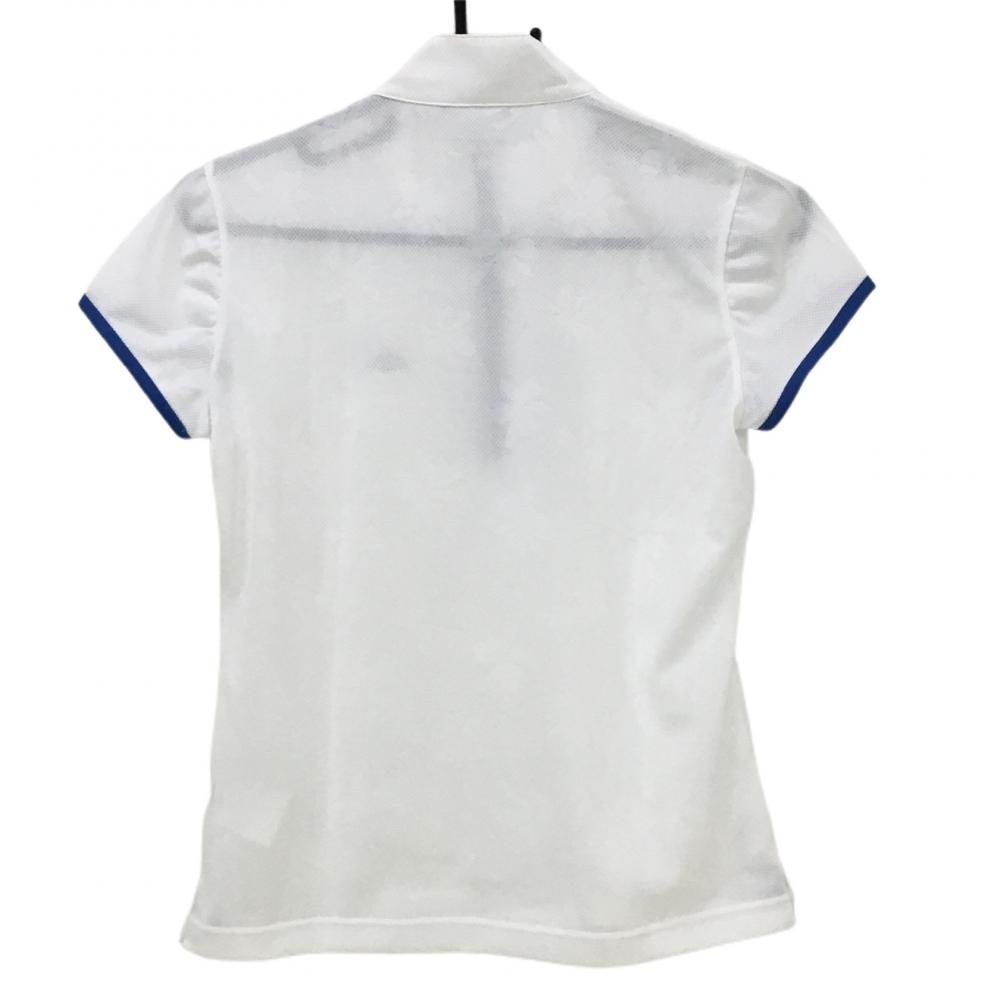 アディダス 半袖ハイネックシャツ 白×ブルー メッシュ調 ハーフジップ ロゴ刺しゅう レディース M/M ゴルフウェア adidas