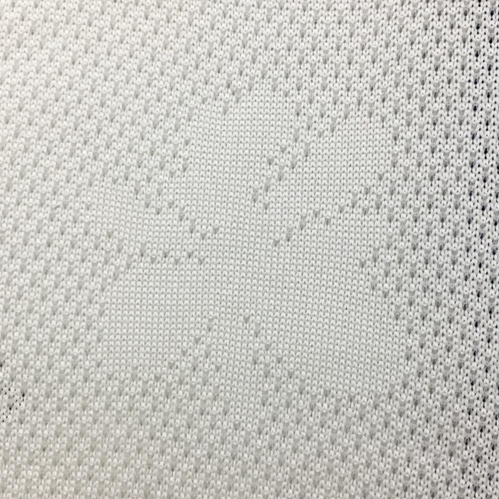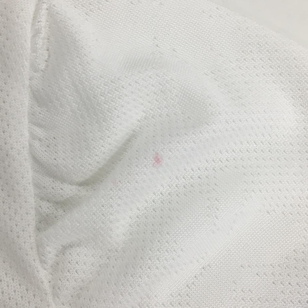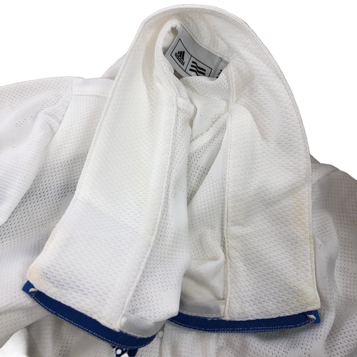 アディダス 半袖ハイネックシャツ 白×ブルー メッシュ調 ハーフジップ ロゴ刺しゅう レディース M/M ゴルフウェア adidas