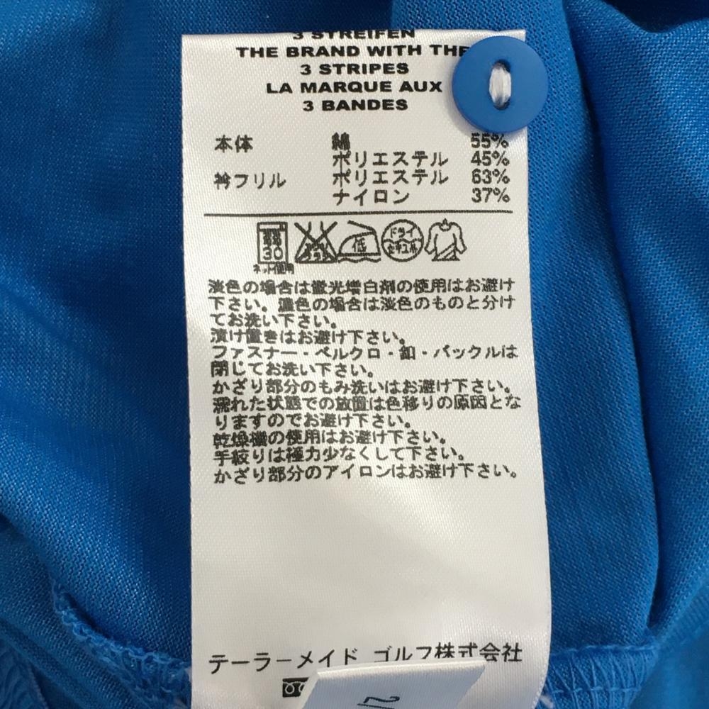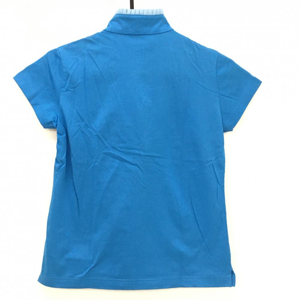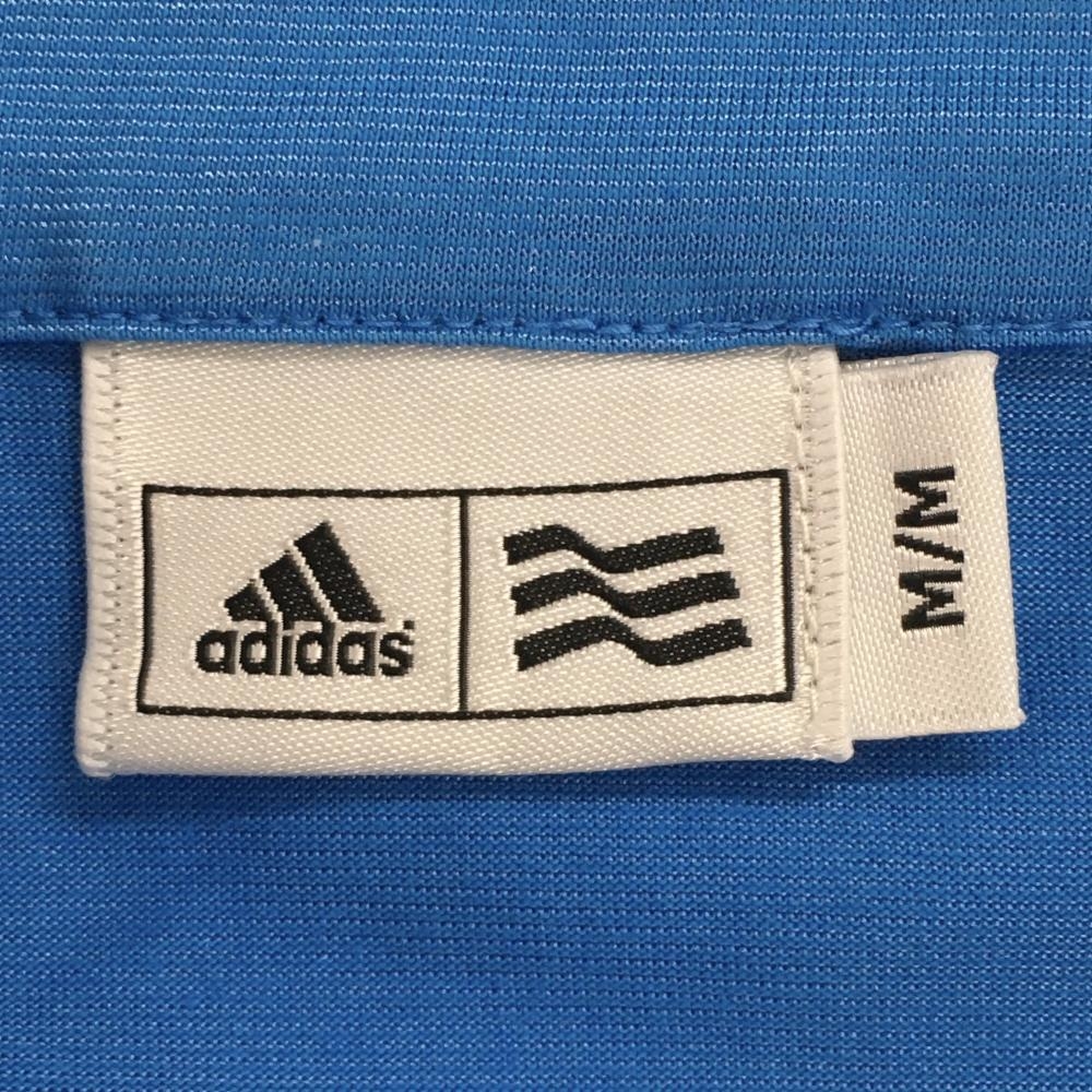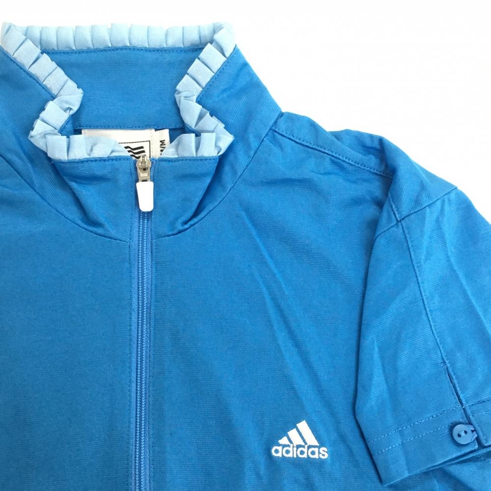 【美品】アディダス 半袖ハイネックシャツ ブルー×白 ネックフリル ハーフジップ ロゴ刺しゅう レディース M/M ゴルフウェア adidas