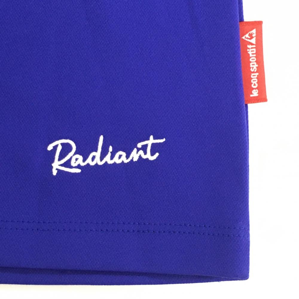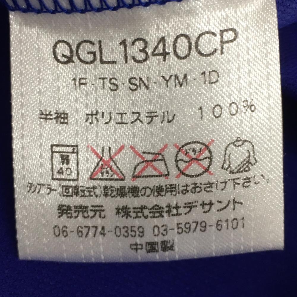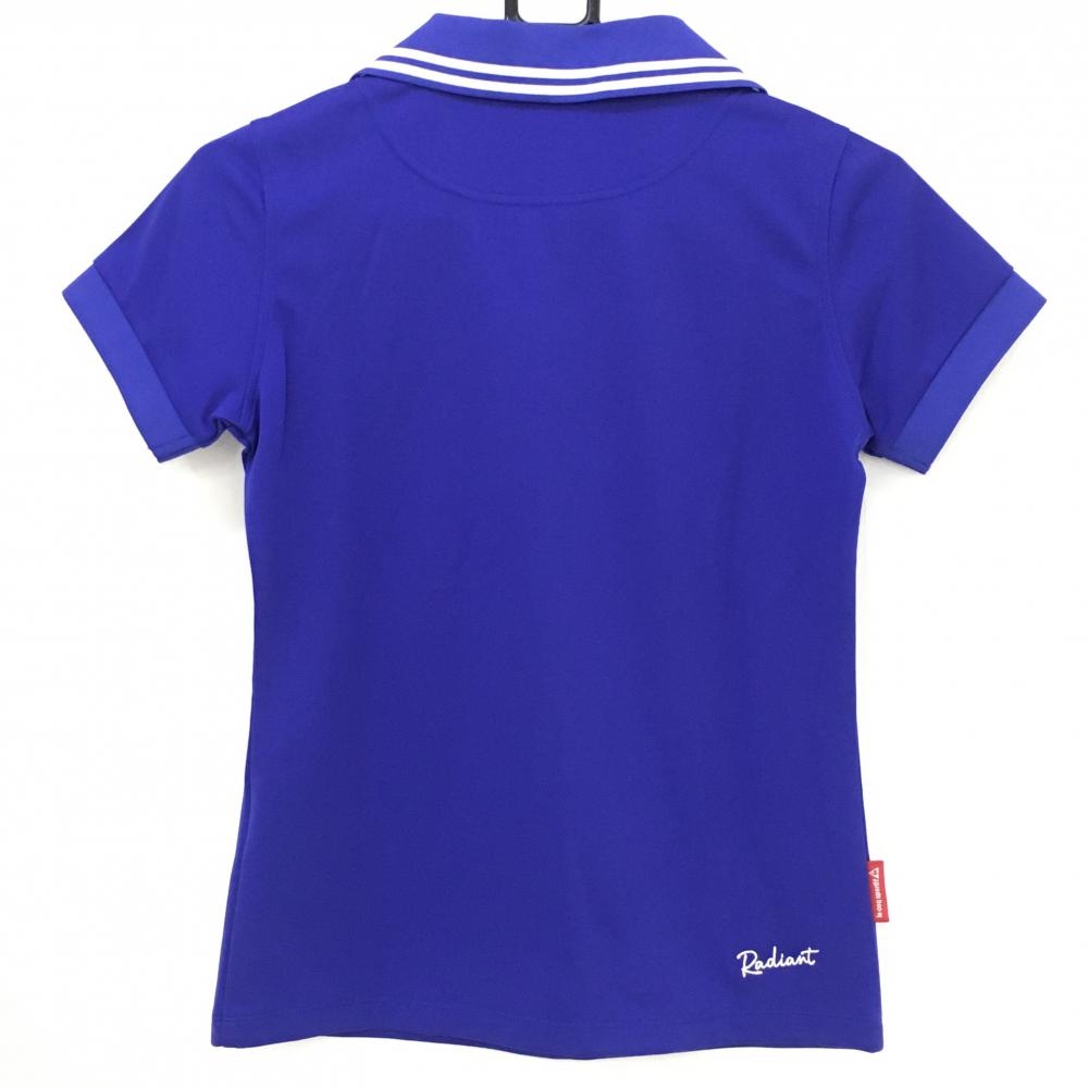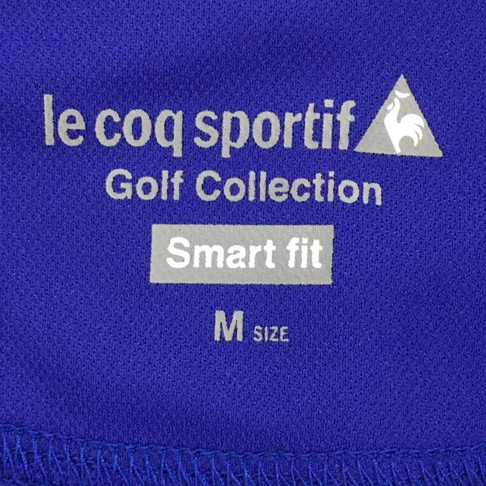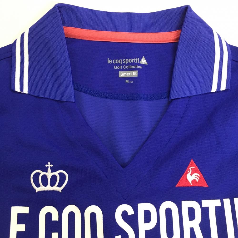 【美品】ルコック 半袖スキッパーシャツ ブルーネイビー×白 ビックプリント ロゴ刺しゅう レディース M ゴルフウェア le coq sportif