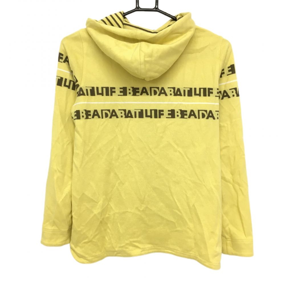 アダバット 長袖パーカー プルオーバー イエロー×カーキ ロゴライン 裾ロゴ刺しゅう レディース 38(M) ゴルフウェア adabat