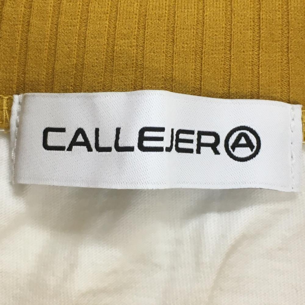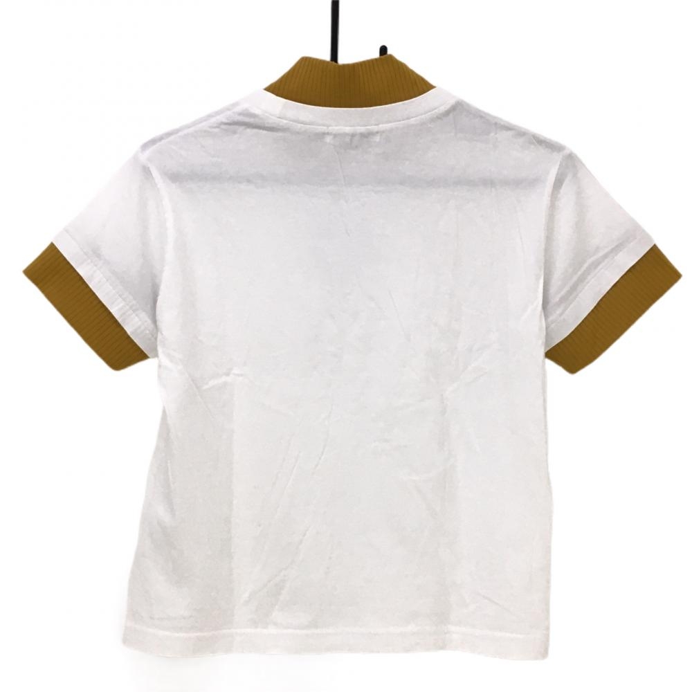 【超美品】カジェヘラ 半袖ハイネックシャツ 白×ライトブラウン フロントプリント 重ね着風 レディース 0 ゴルフウェア CALLEJER