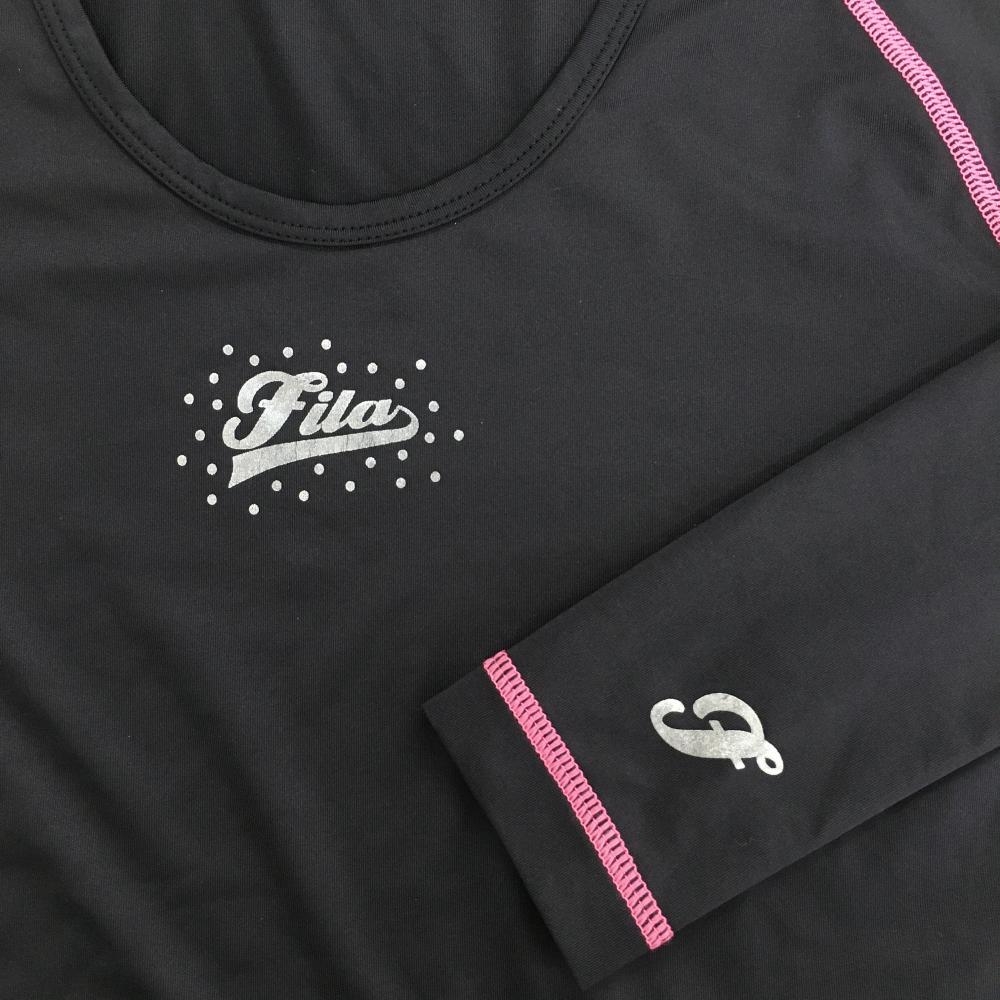 【美品】フィラゴルフ インナーシャツ 黒 ステッチピンク レディース M ゴルフウェア FILA GOLF