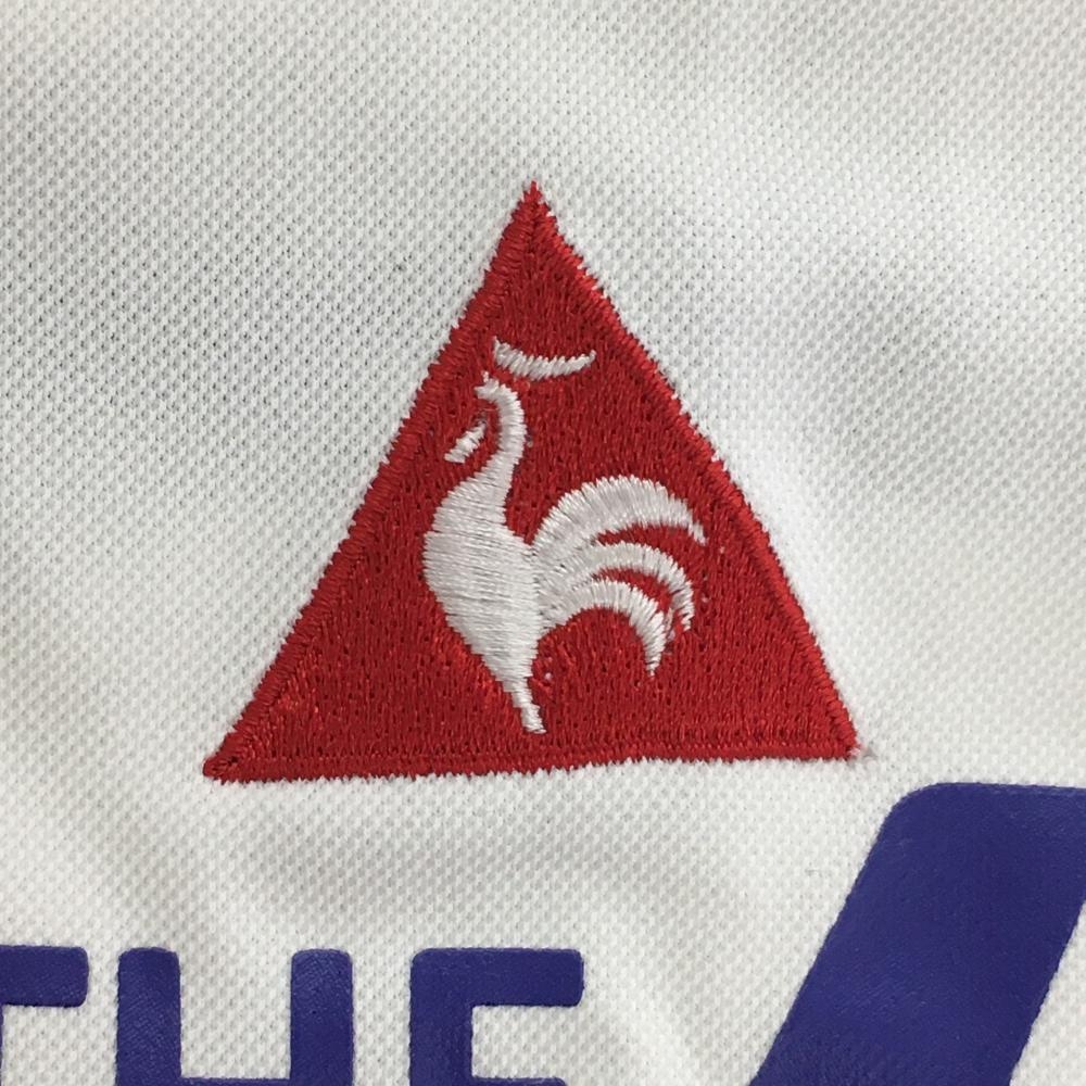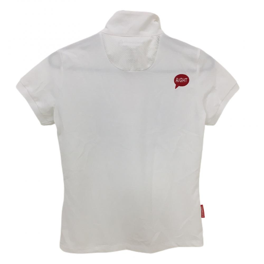 【美品】ルコック 半袖ハイネックシャツ 白×ブルーパープル ハーフジップ 英字プリント レディース M ゴルフウェア le coq sportif