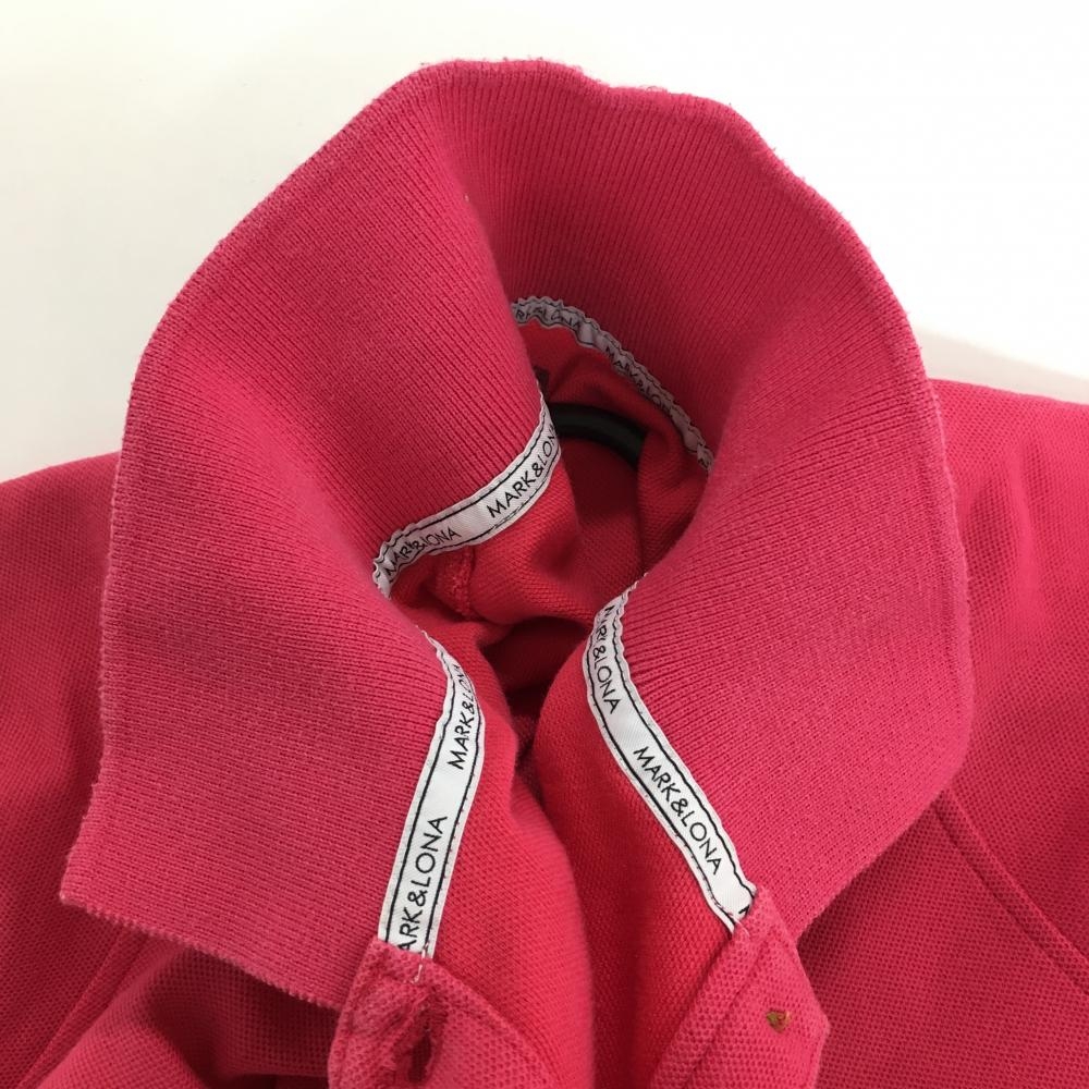 マークアンドロナ 半袖ポロシャツ ピンク スカルワッペン 襟裏ロゴ レディース S ゴルフウェア MARK&LONA