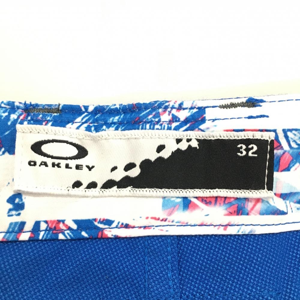 【美品】オークリー パンツ ブルー×ダークグレー ロゴ刺しゅう ティー装着可 メンズ 32 ゴルフウェア Oakley