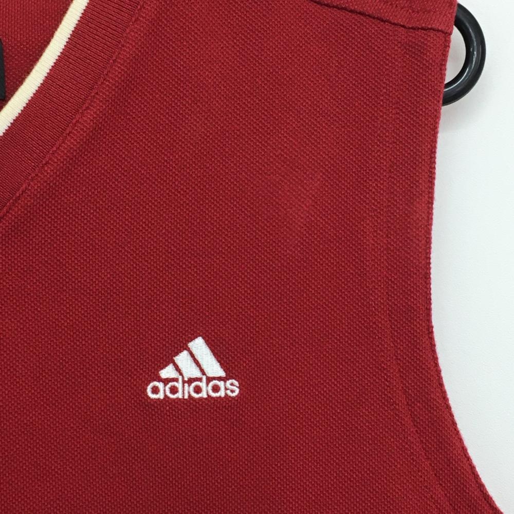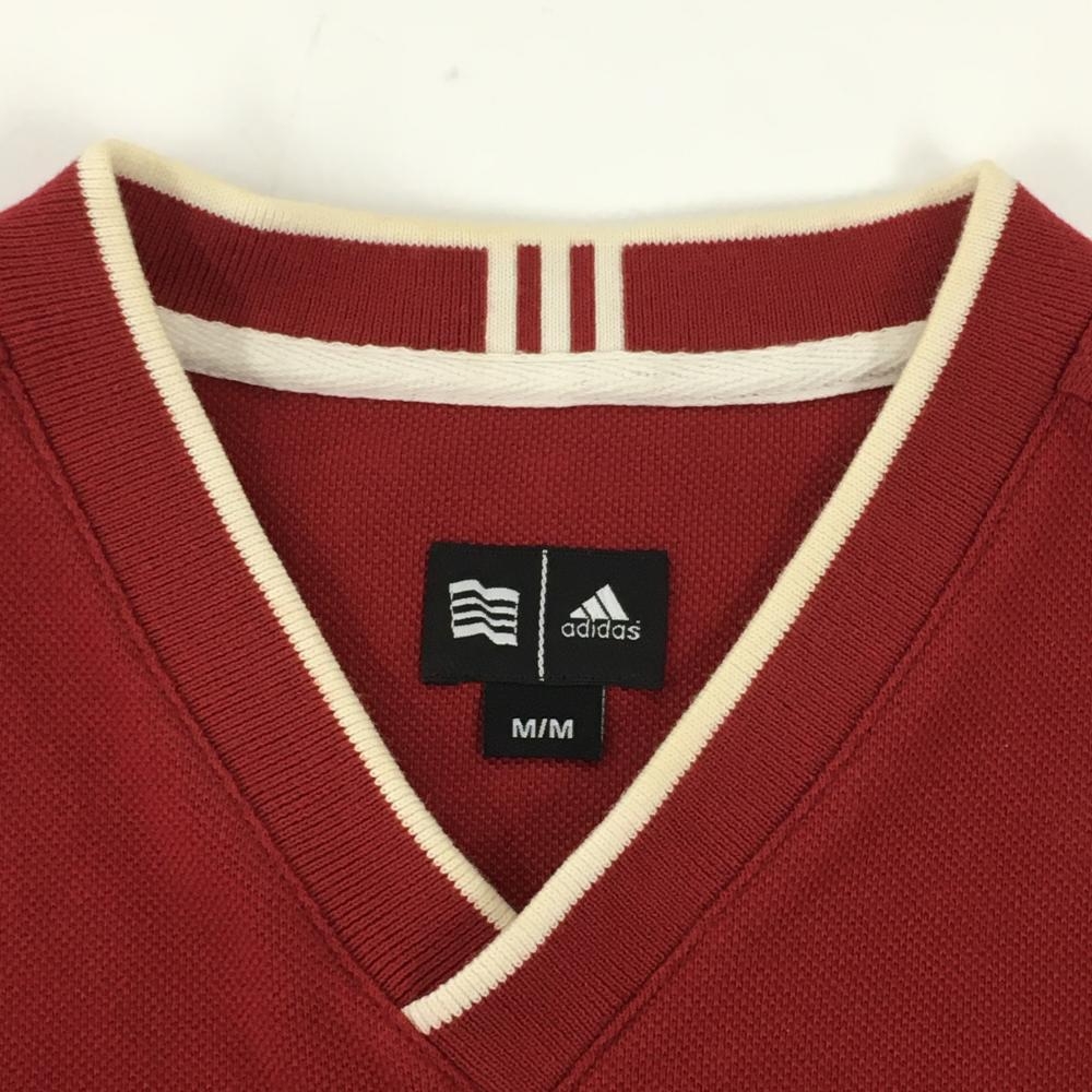 アディダス ベスト レッド×白 Vネック 裏起毛 メンズ M/M ゴルフウェア adidas
