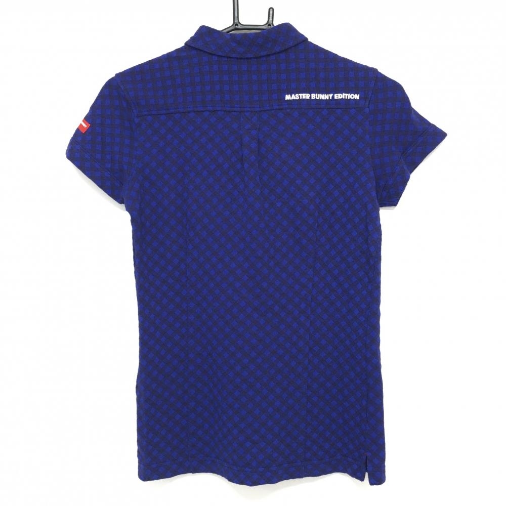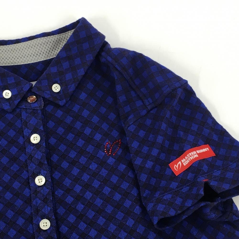 【超美品】マスターバニー 半袖ポロシャツ ブルー×ネイビー チェック ボタンダウン レディース 0(S) ゴルフウェア MASTER BUNNY EDITION