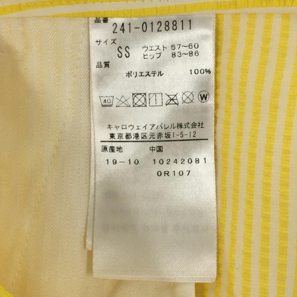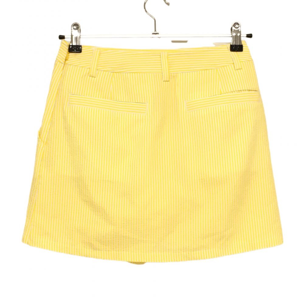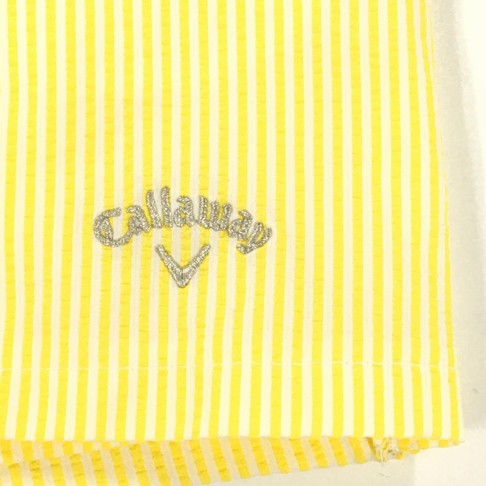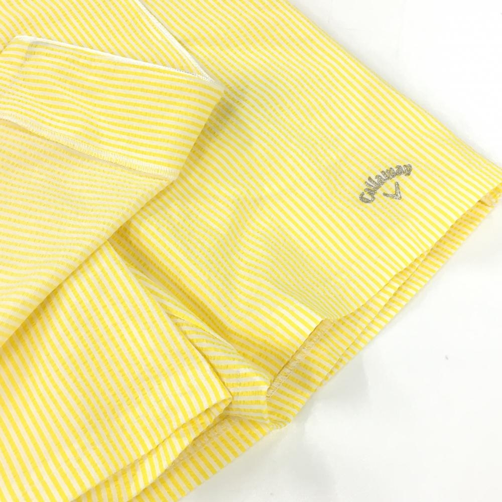 【超美品】キャロウェイ スカート イエロー×白 ストライプ柄 サッカー生地 ロゴ刺しゅう レディース SS ゴルフウェア Callaway