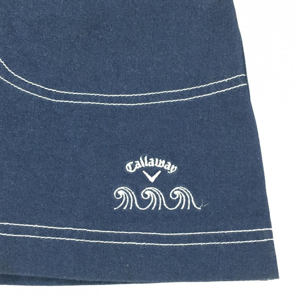【美品】キャロウェイ スカート 杢ネイビー×白 ステッチ ロゴ刺しゅう レディース M ゴルフウェア Callaway