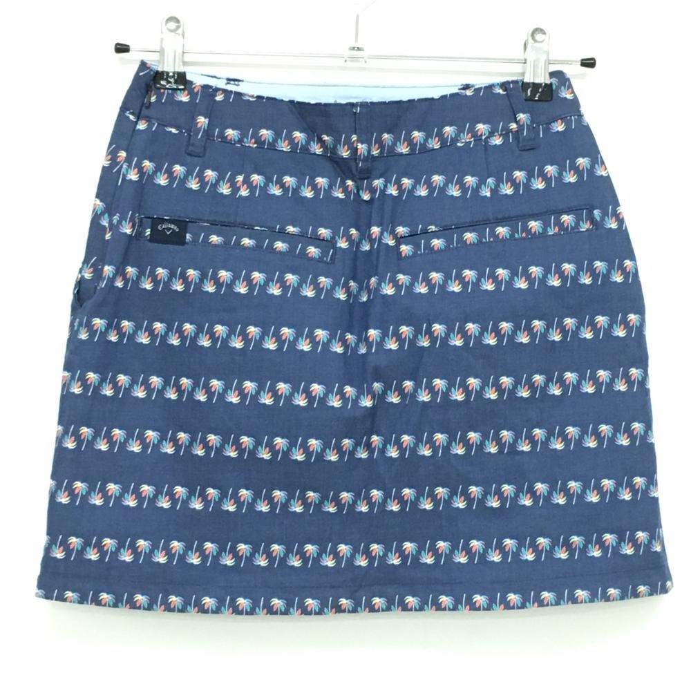 【超美品】キャロウェイ スカート 杢ネイビー×マルチカラー ヤシの木柄 バックロゴ レディース SS ゴルフウェア Callaway