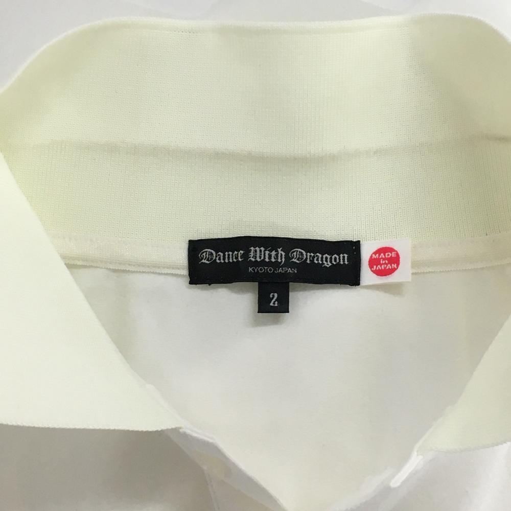 ダンスウィズドラゴン 半袖ポロシャツ 白×黒 スマホ刺しゅう 胸ポケット付 メンズ 2(M) ゴルフウェア Dance With Dragon