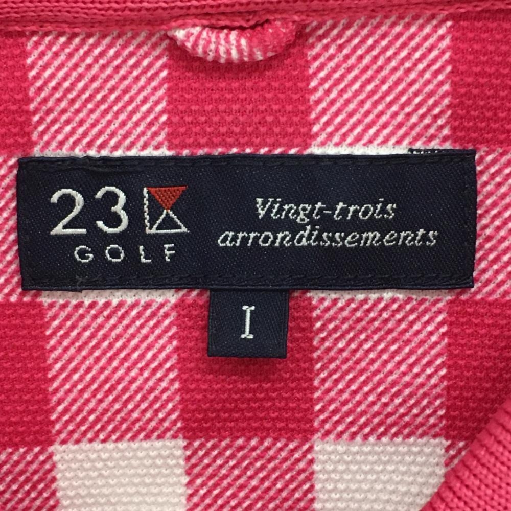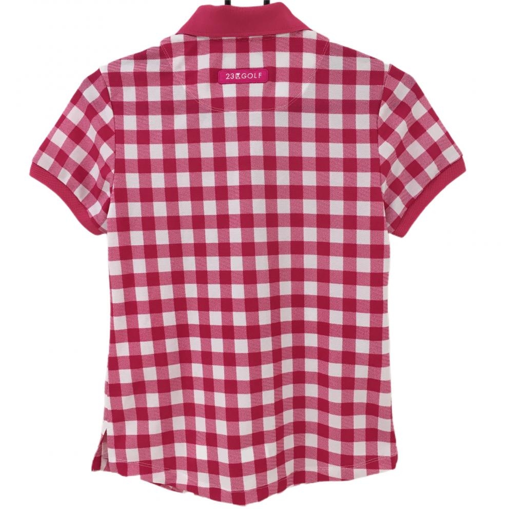 【美品】23区ゴルフ 半袖ポロシャツ ピンク×白 チェック レディース I(M) ゴルフウェア 23区