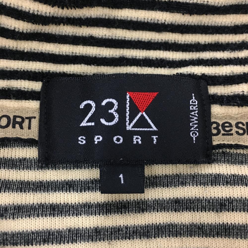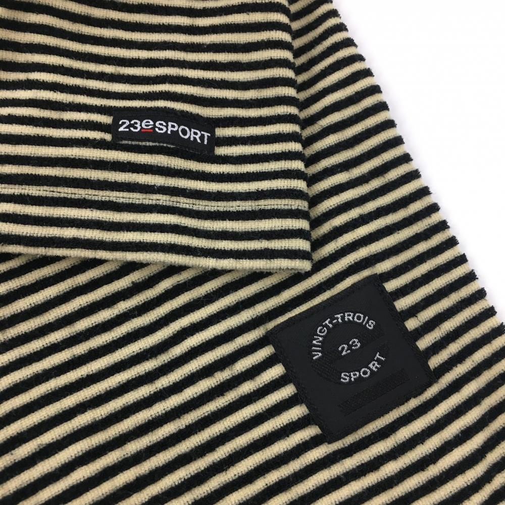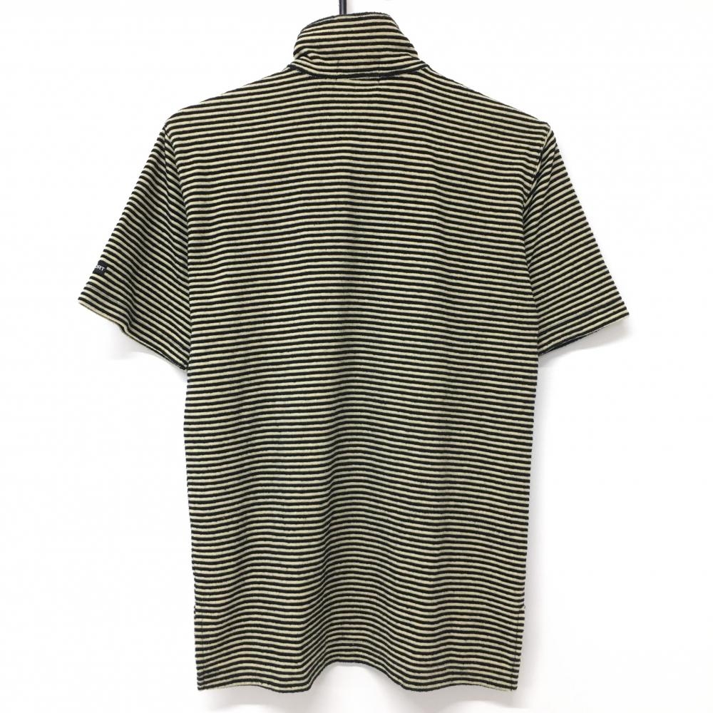 23区スポーツ 半袖ハイネックシャツ 黒×イエロー ボーダー パイル地 ハーフジップ レディース 1(M) ゴルフウェア 23区