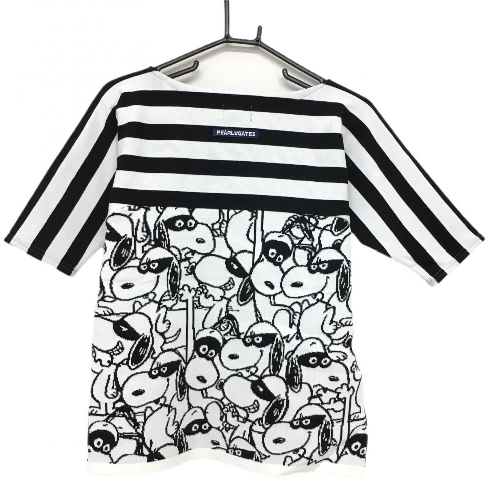 【新品】パーリーゲイツ×PEANUTS 半端袖セーター 白×黒 スヌーピー ニット 日本製 レディース 1(M) ゴルフウェア PEARLY GATES