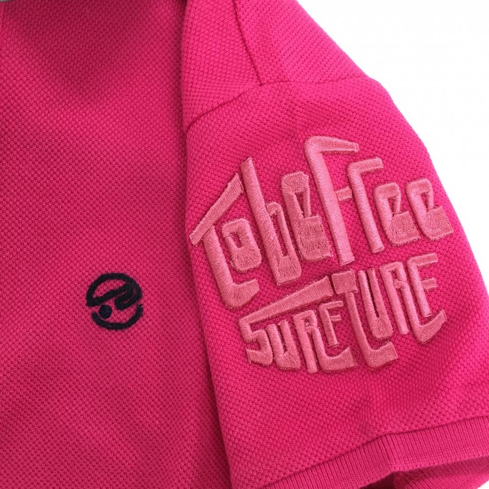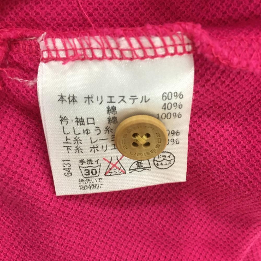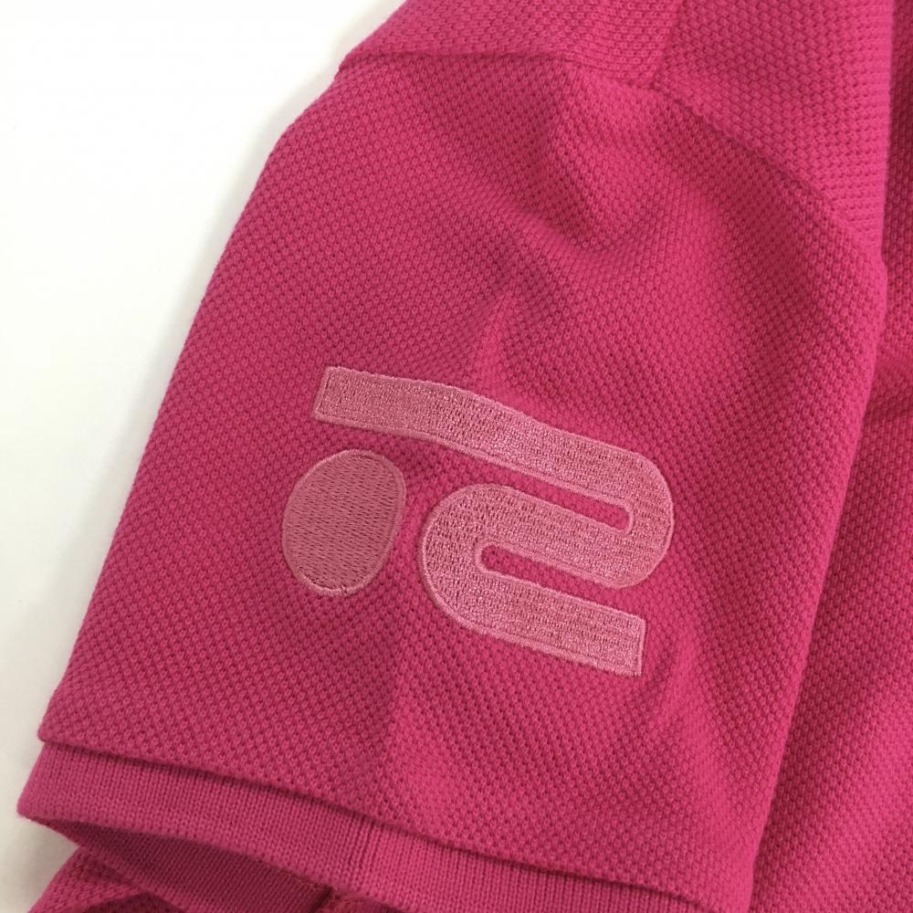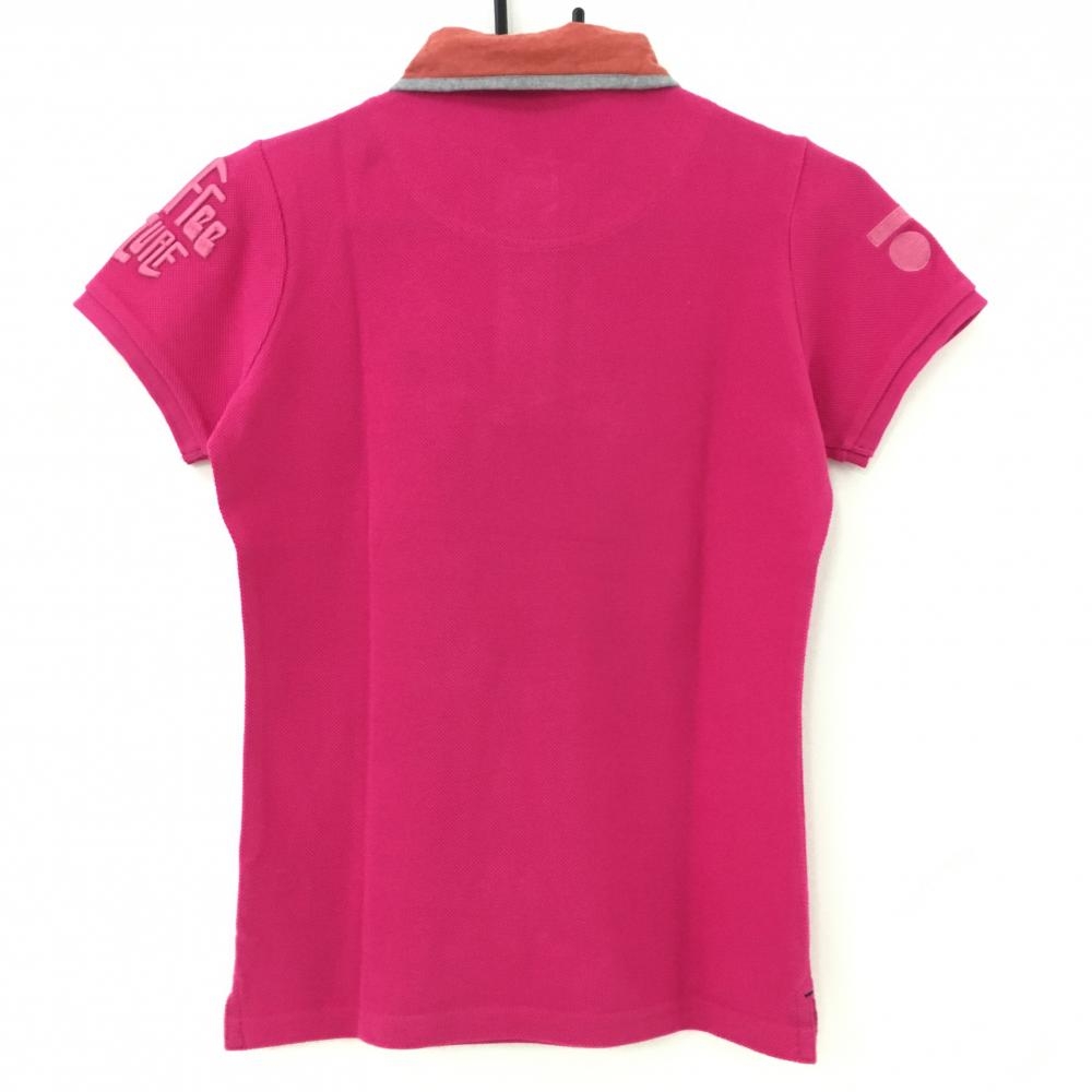 【美品】ロサーセン 半袖ポロシャツ ピンク×グレー 胸元ロゴ 袖立体刺しゅう レディース M ゴルフウェア Rosasen