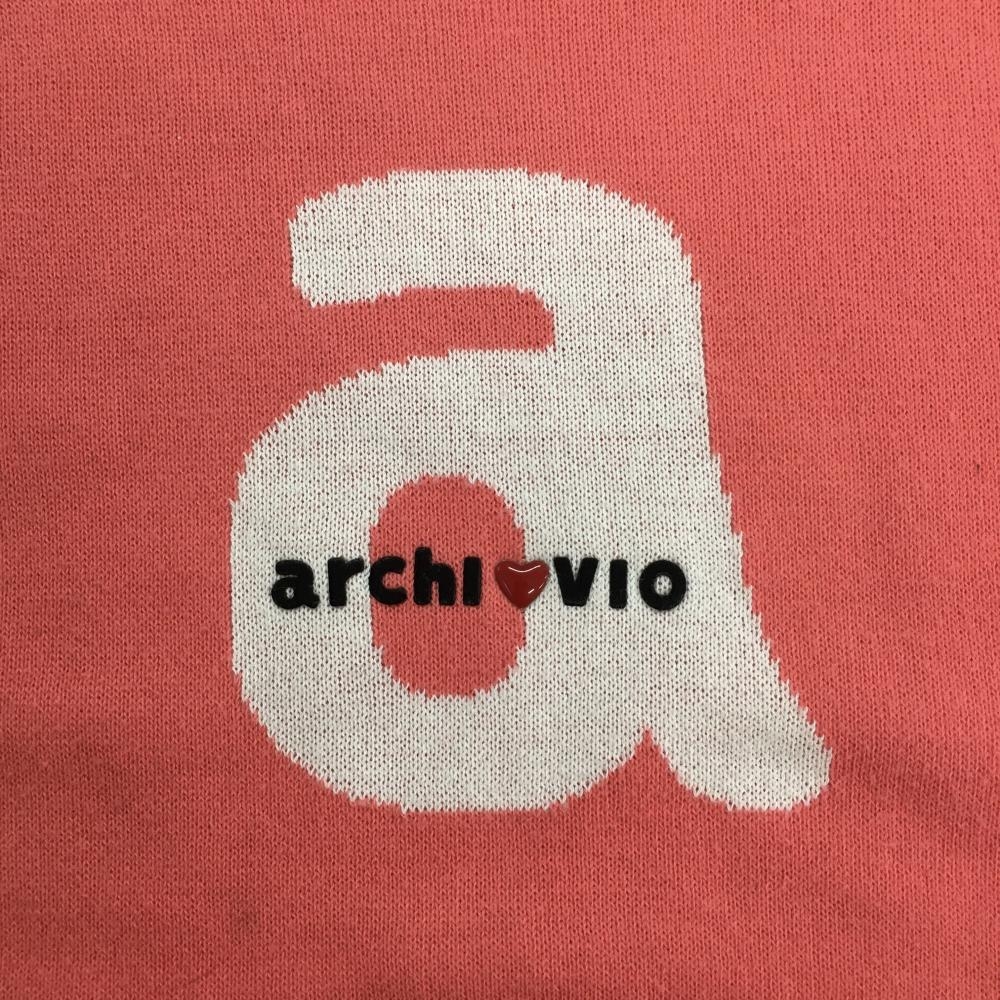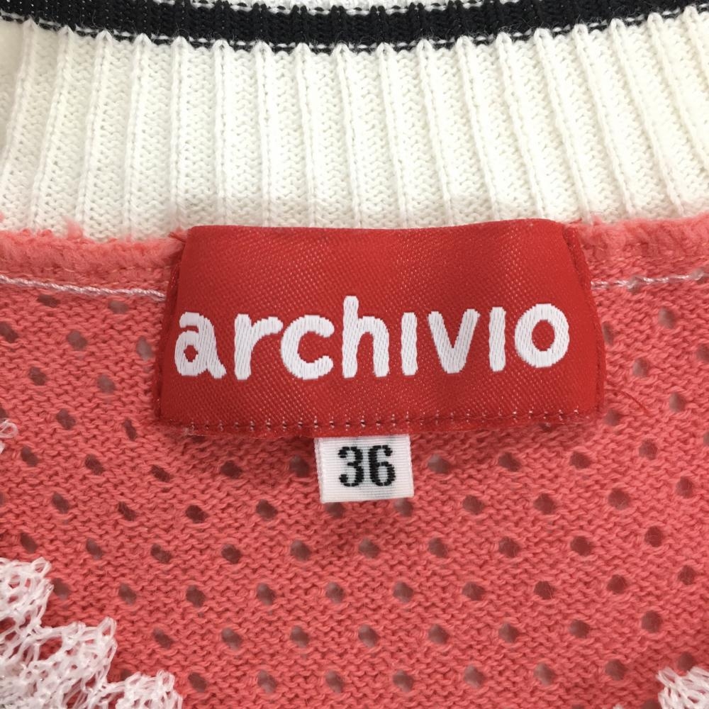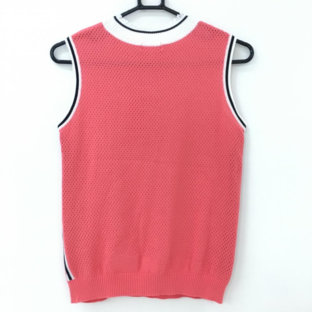 【美品】アルチビオ ニットベスト サーモンピンク×白 ハイネック 後ろ透かし編み レディース 36(S) ゴルフウェア archivio