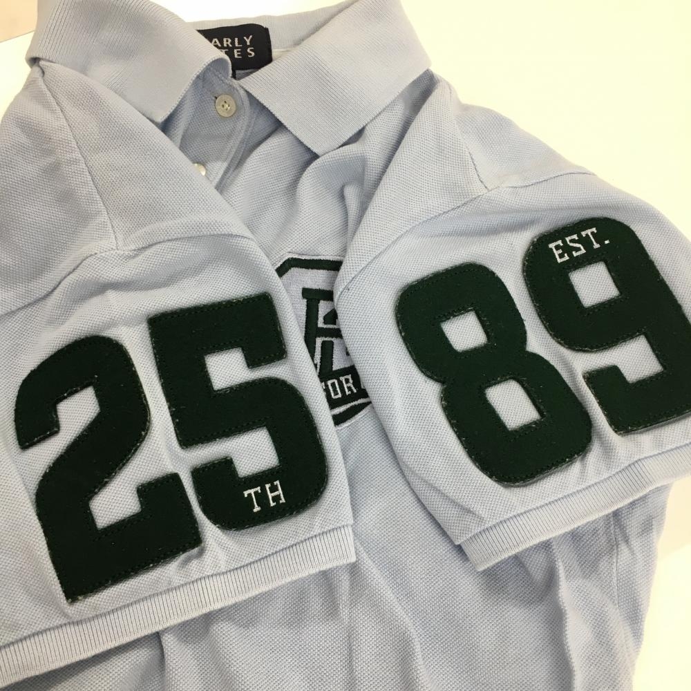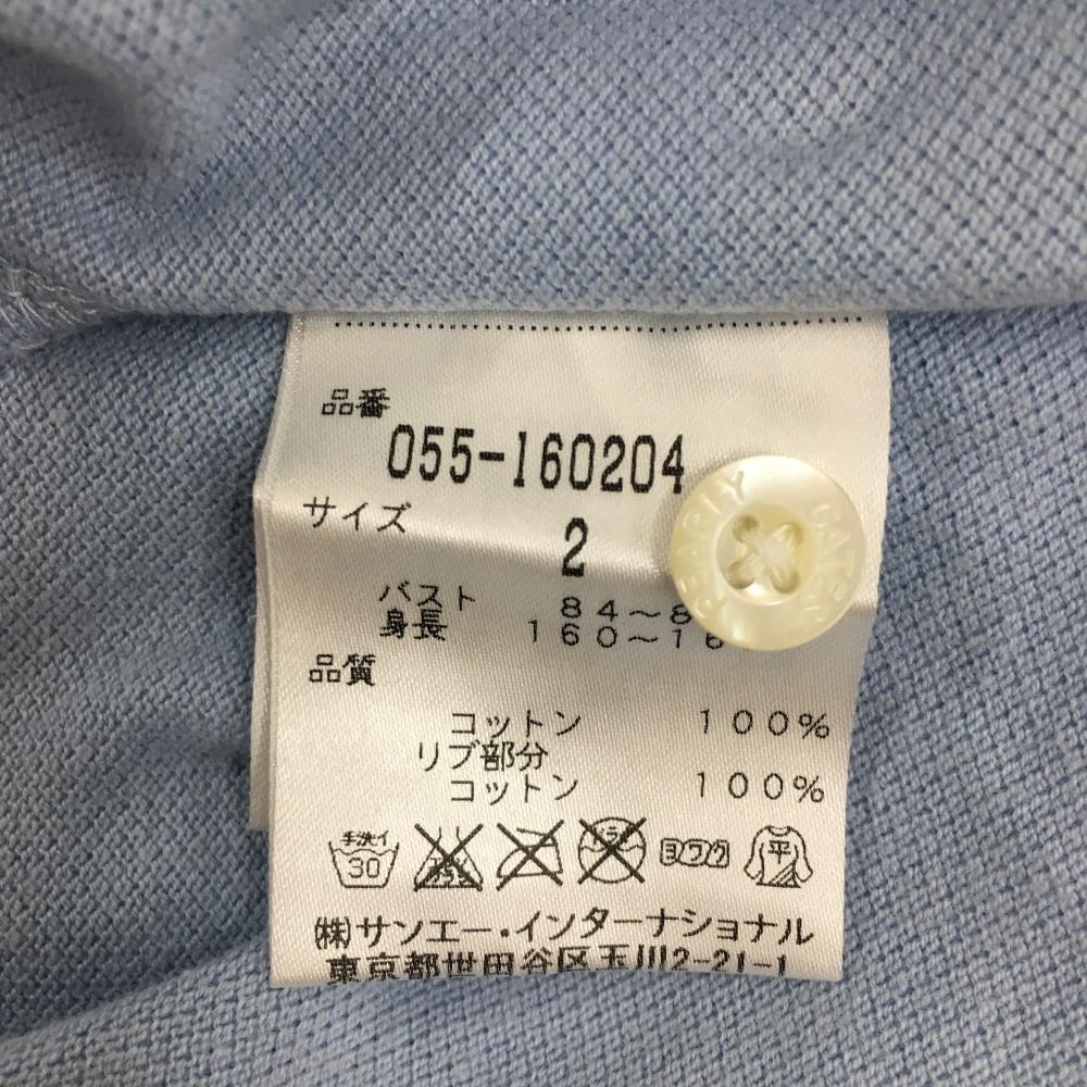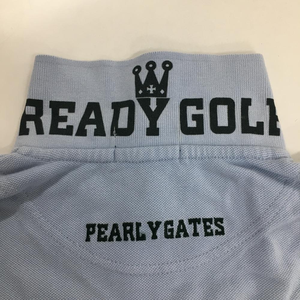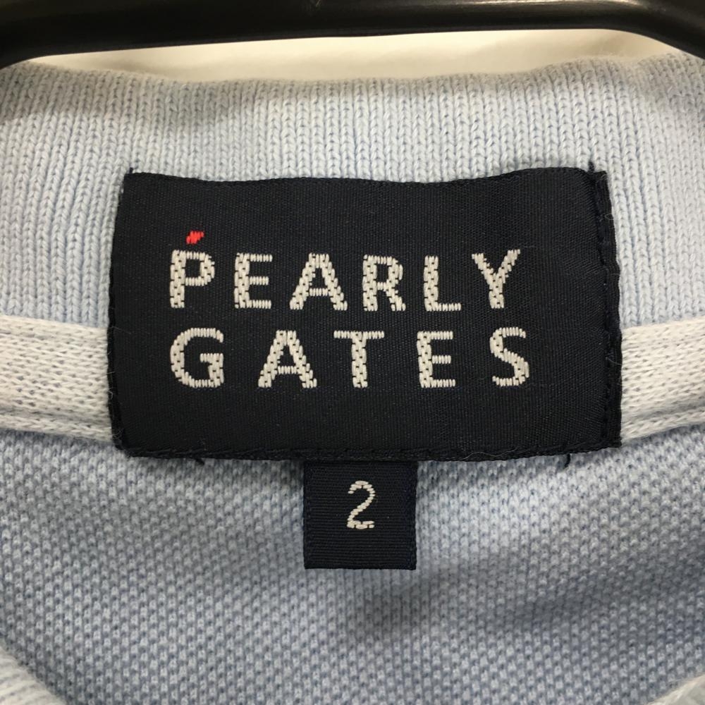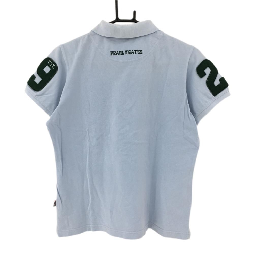 パーリーゲイツ 半袖ポロシャツ ライトブルー×グリーン 25周年 襟裏ロゴ レディース 2(L) ゴルフウェア PEARLY GATES