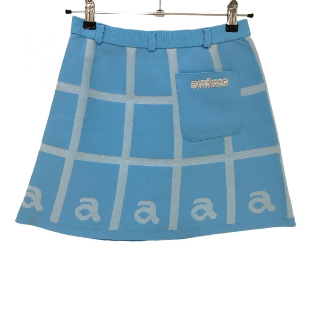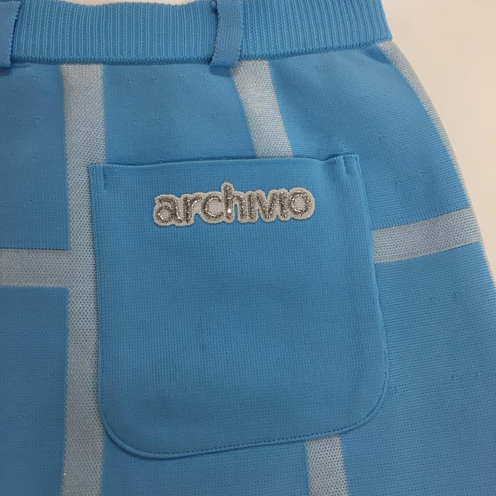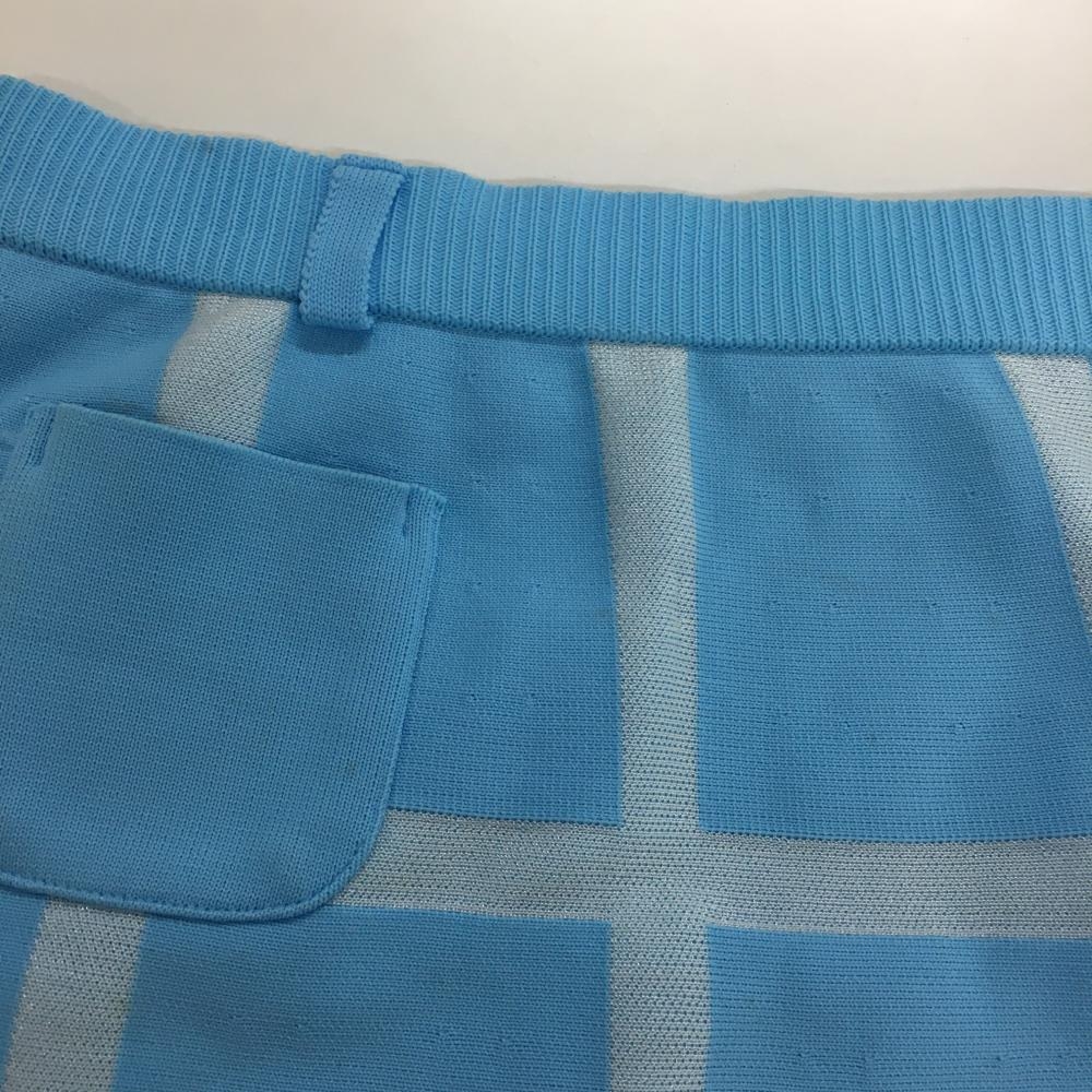 アルチビオ ニットスカート ライトブルー×白 格子チェック ウエストゴム サイド黒ライン レディース 36 ゴルフウェア archivio