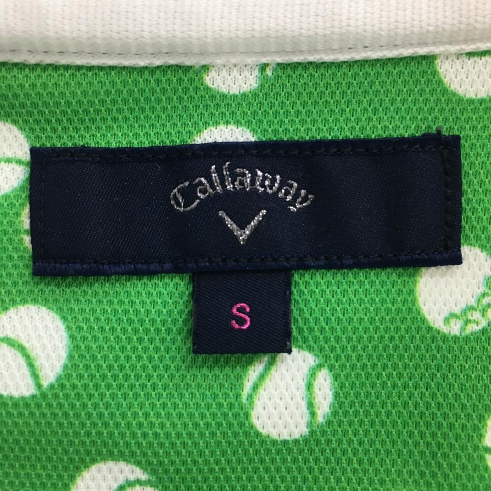キャロウェイ 半袖ポロシャツ グリーン×白 ボール柄 ロゴ刺しゅう レディース S ゴルフウェア Callaway